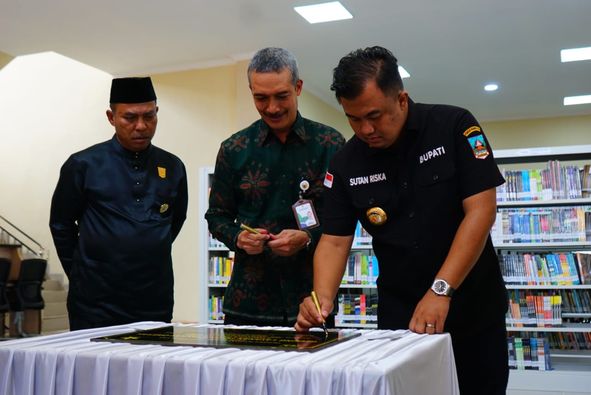 Dharmasraya, hantaran.co – Bupati Dharmasraya Sutan Riska Tuanku Kerajaan, melakukan Peresmian Gedung Layanan Perpustakaan Umum Daerah Kabupaten Dharmasraya, Minggu (7/1/24) yang berlokasi di Sport Center Koto Padang Kecamatan Koto Baru.