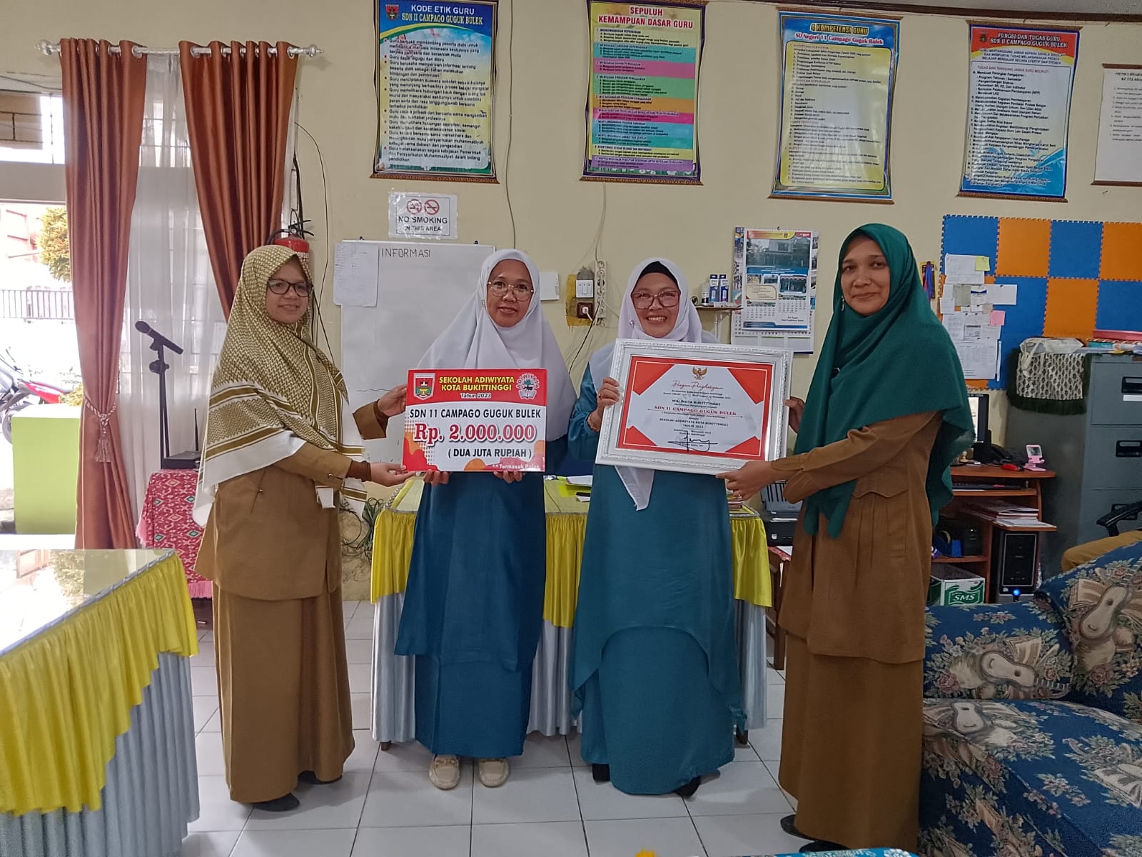“Alhamdulillah, berkat kerja keras seluruh warga sekolah beserta orang tua siswa dan dukungan pihak terkait, SD Negeri 11 Campago Guguak Bulek menerima penghargaan Adiwiyata Kota Bukittinggi tahun 2023 yang diserahkan DLH Bukittinggi awal tahun lalu. Tentunya, ini menjadi kebanggan dan motivasi kami untuk lanjut penilaian tingkat selanjutnya,” ungkap Kepala SD Negeri 11 Campago Guguak Bulek Irma Yuni baru-baru ini.