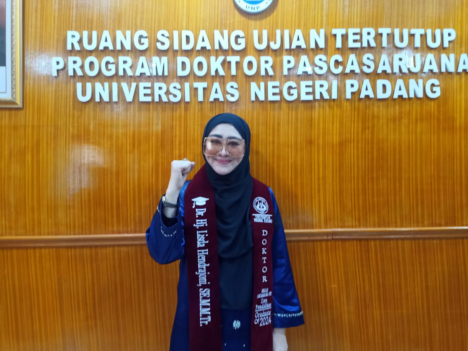 PADANG, hantaran.co – Akhirnya gelar Doktor Pendidikan berhasil disandang Lisda Hendrajoni setelah diuji oleh sembilan orang promotor di ruang sidang ujian tertutup Program Doktor Pasca Sarjana Universitas Negeri Padang, Selasa (30/4).