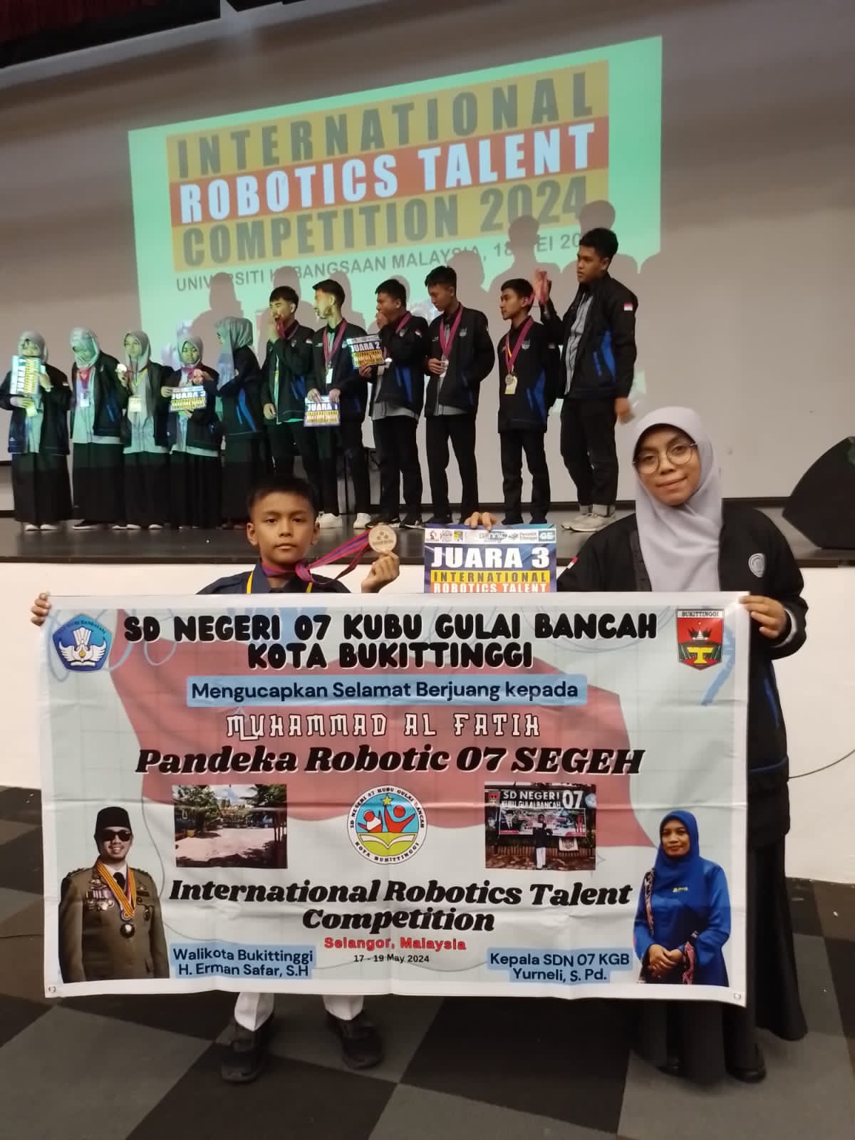 BUKITTINGGI, hantaran.co – Pelajar Kota Bukittinggi kembali harumkan nama kota pendidikan tersebut di kancah internasional. Kali ini, siswa SD Negeri 07 Kubu Gulai Bancah Muhammad Ali Fatih berhasil meraih juara dalam International Robotics Talent Competition 2024 yang digelar di Selangor Malaysia, pekan lalu.