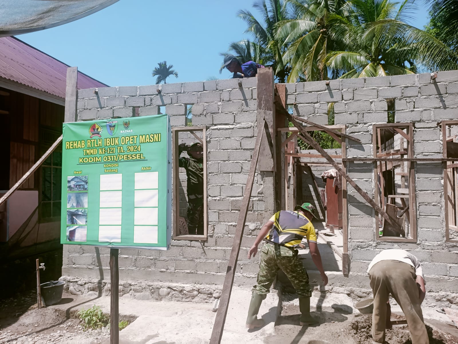 Diketahui, pembangunan rumah Mak Opet merupakan satu dari lima unit RTLH yang menjadi target sasaran fisik tambahan pada kegiatan Tentara Manunggal Membangun Desa (TMMD) ke-121 di wilayah Kodim 0311 Pesisir Selatan.