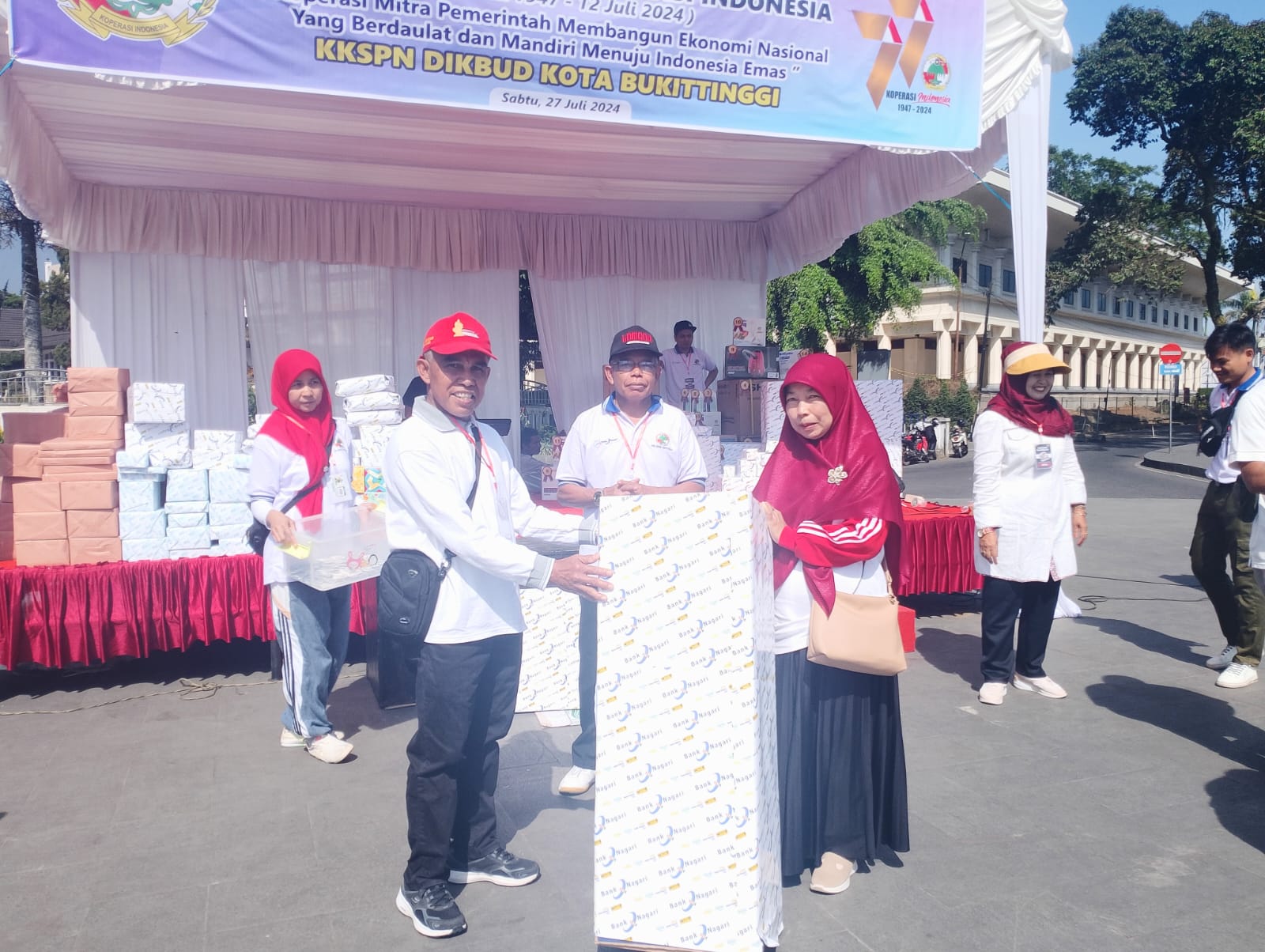 BUKITTINGGI, hantaran.co – Pengurus Koperasi Konsumen Syariah Pegawai Negeri (KKSPN) Dinas Pendidikan dan Kebudayaan (Disdikbud) Kota Bukittinggi menggelar Gebyar Hari Koperasi ke 77 Tahun 2024 di Pelataran Jam Gadang Bukittinggi, Sabtu (27/7).
