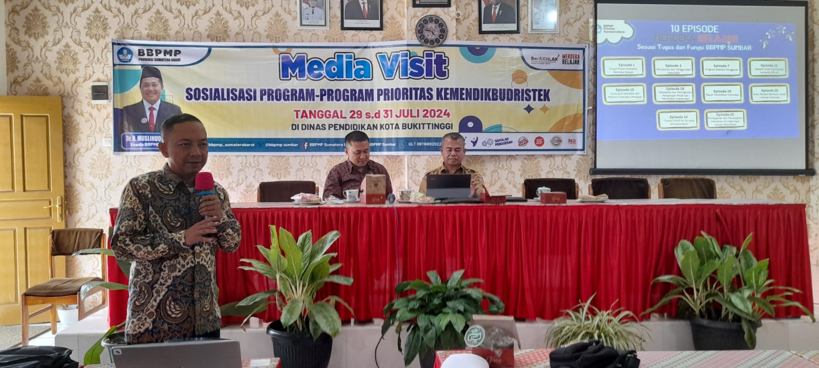 Kegiatan media visit sosialisasi program program prioritas Kemendikbudristek di buka secara resmi, Kabid. Pembinaan, Ketenagaan dan Peningkatan Mutu Dinas Pendidikan Kota Bukittinggi Masri, SPd. MPd serta turut dihadiri Kabag Umum Balai Besar Penjaminan Mutu Pendidikan (BBPMP) Provinsi Sumbar, Diansa Gunadi Thaib, SE. M. Comm, PIC 07 BBPMP Sumbar, Bony Ermond, ST. M. Cio dan beberapa media cetak dan online di Bukittinggi.(*).