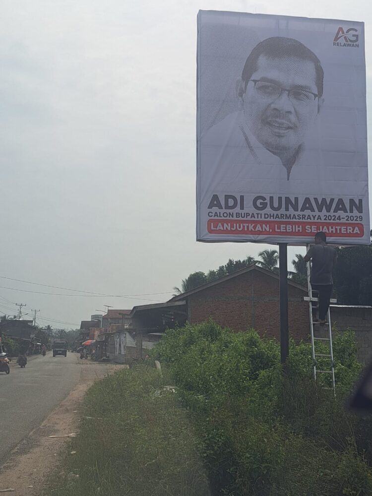 Baliho yang menyatakan ia akan maju sebagai bakal calon bupati belum ada terlihat disepanjang jalan di Dharmasraya.