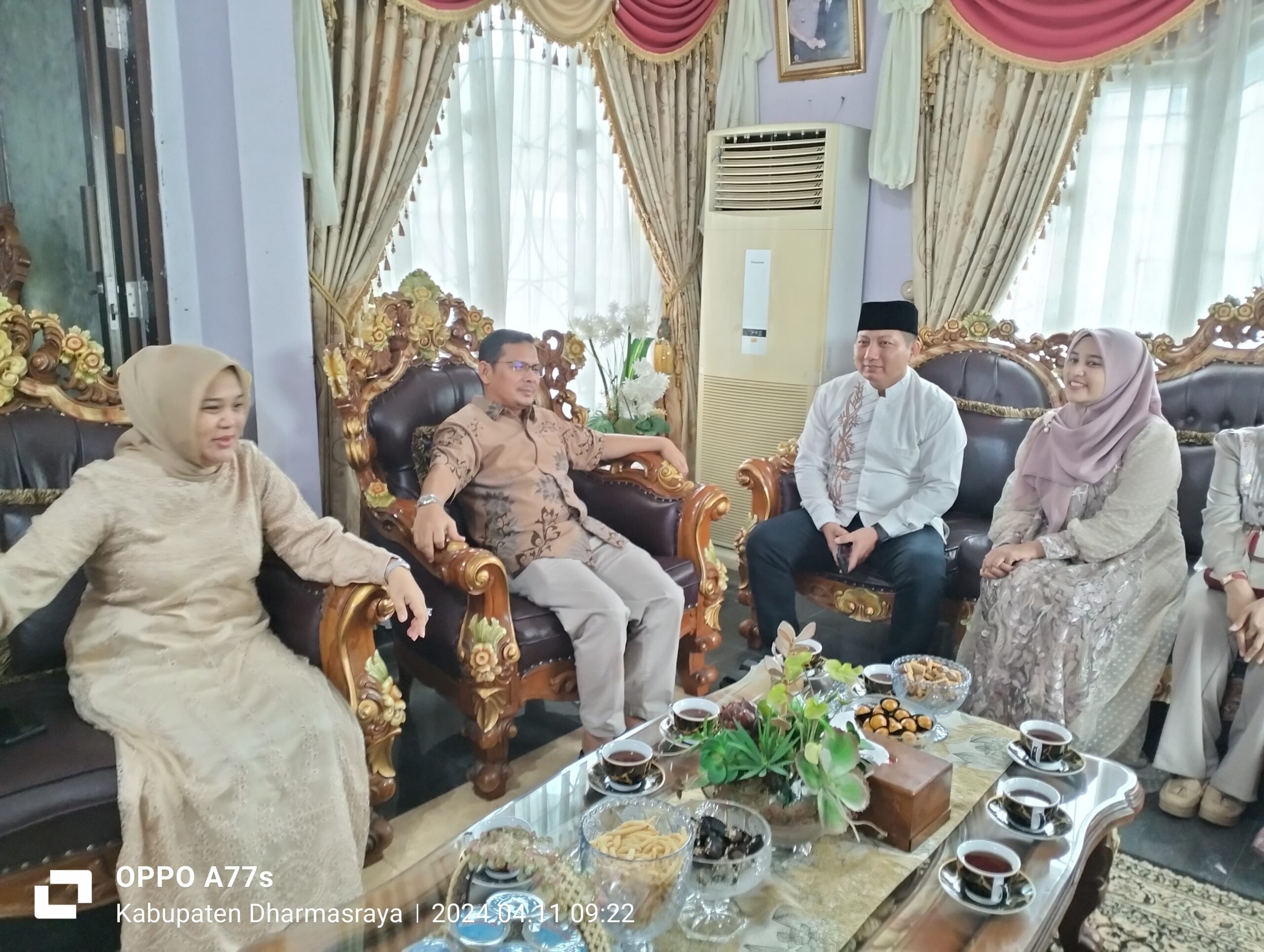 DHARMASRAYA, HANTARAN.CO – Kapolres Dharmasraya AKBP Bagus Ikhwan. SIK,MH., didampingi Kabag Ops Kompol Eiswantri., S.H., M.H,, beserta Ibu Ketua Bhayangkari Cabang Dharmasraya Ny. Riyana Bagus, serta Pejabat Utama (PJU) dan Pengurs Bhayangkari, kunjungi pimpinan DPRD Kabupaten Dharmasraya Ir. H. Adi Gunawan, M. M., pada hari kedua lebaran Idul Fitri 1445 H /2024 M., di kediamannya Perumnas Mega Permai I, Gunung Medan, Kecamatan Sitiung, Kamis (11/4/24).