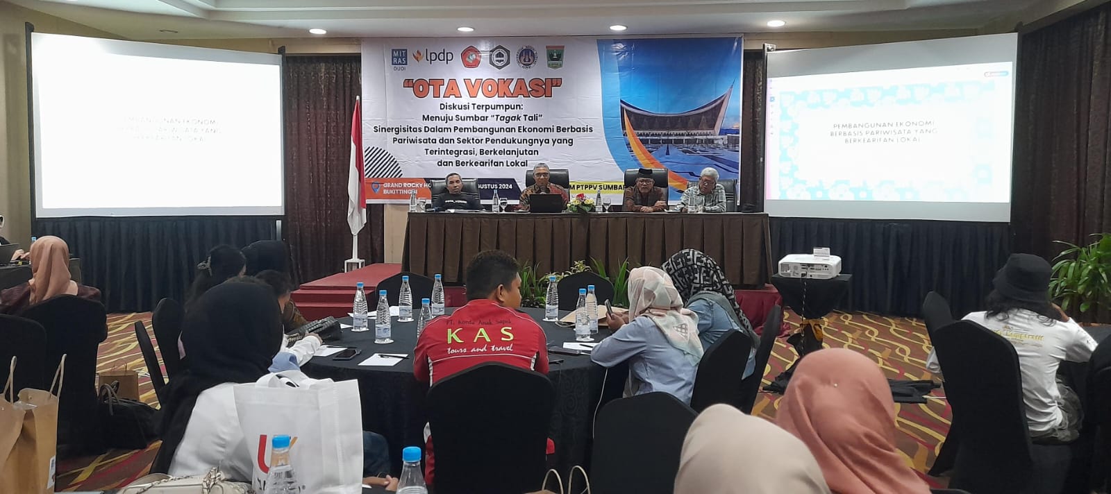 BUKITTINGGI, hantaran.co – Konsorsium Perguruan Tinggi Vokasi (PTV) mengelar Ota Vokasi diskusi terpumpun menuju Sumbar Tagak Tali. Sinergitas dalam pembangunan ekonomi berbasis pariwisata dan sektor pendukungnya yang terintegrasi, berkelanjutan dan berkesinambungan di Hotel Rocky Bukittinggi, Sabtu (10/8).