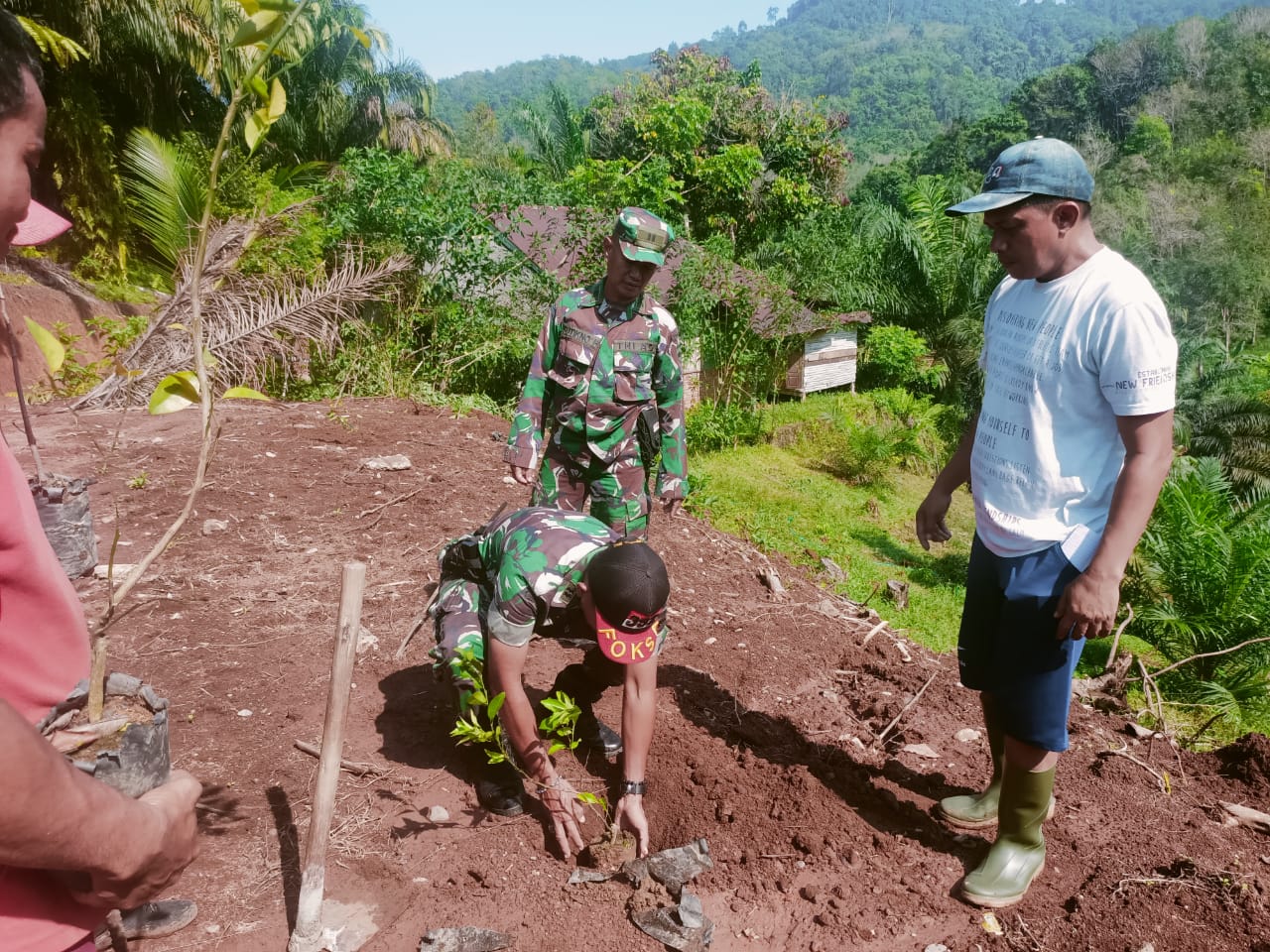 Kali ini, personel TNI bersama warga setempat melaksanakan kegiatan bakti sosial dengan cara menanam pohon sebagai upaya menjaga lingkungan agar terhindar dari bencana alam, Kamis (15/8).