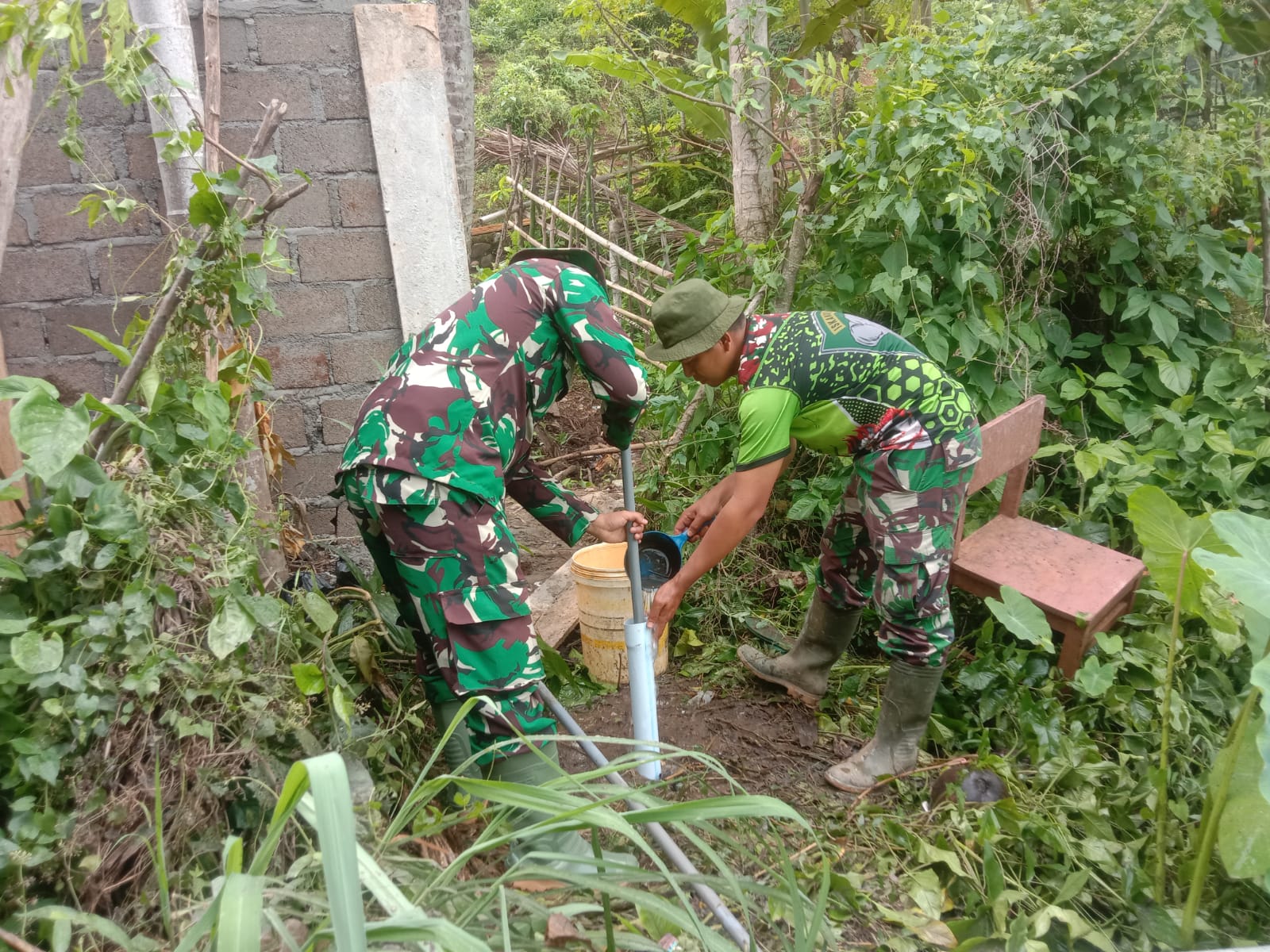 Terlihat personel Satgas TMMD Pesisir Selatan, Serda Mondri bersama Kopdar Sabrul Jamil berjibaku bersama masyarakat menggali sumur bor untuk mendapatkan akses air bersih, yang berlokasi di Nagari Air Batu, Kecamatan Ranah Pesisir.
