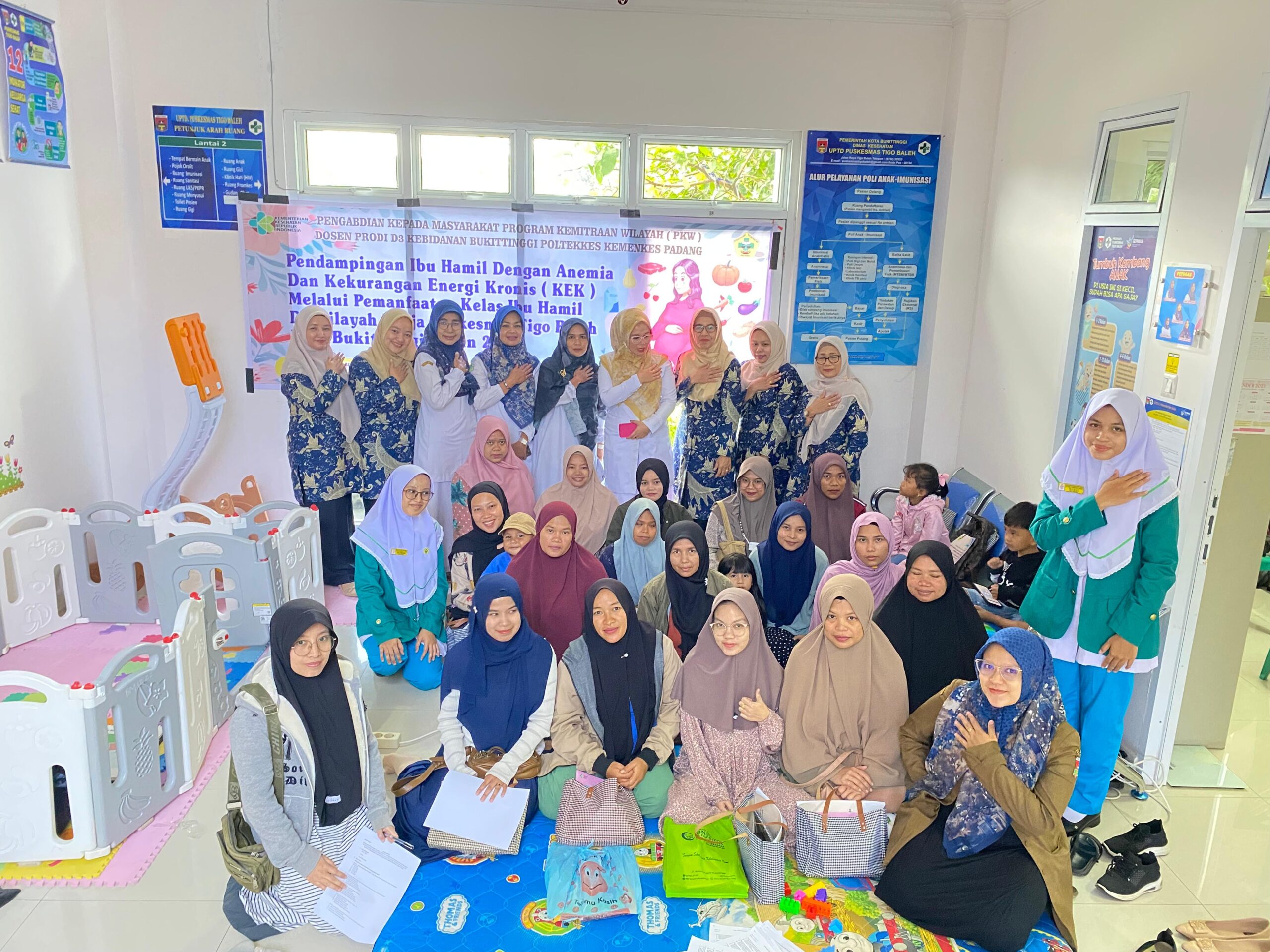 Kegiatan pengabdian masyarakat itu mengambil tema Pendampingan Ibu Hamil Dengan Anemia dan Kekurangan Energi Kronis (KEK) Melalui Pemanfaatan Kelas Ibu Hamil di wilayah kerja Puskesmas Tigo Baleh Kota Bukittinggi Tahun 2024.