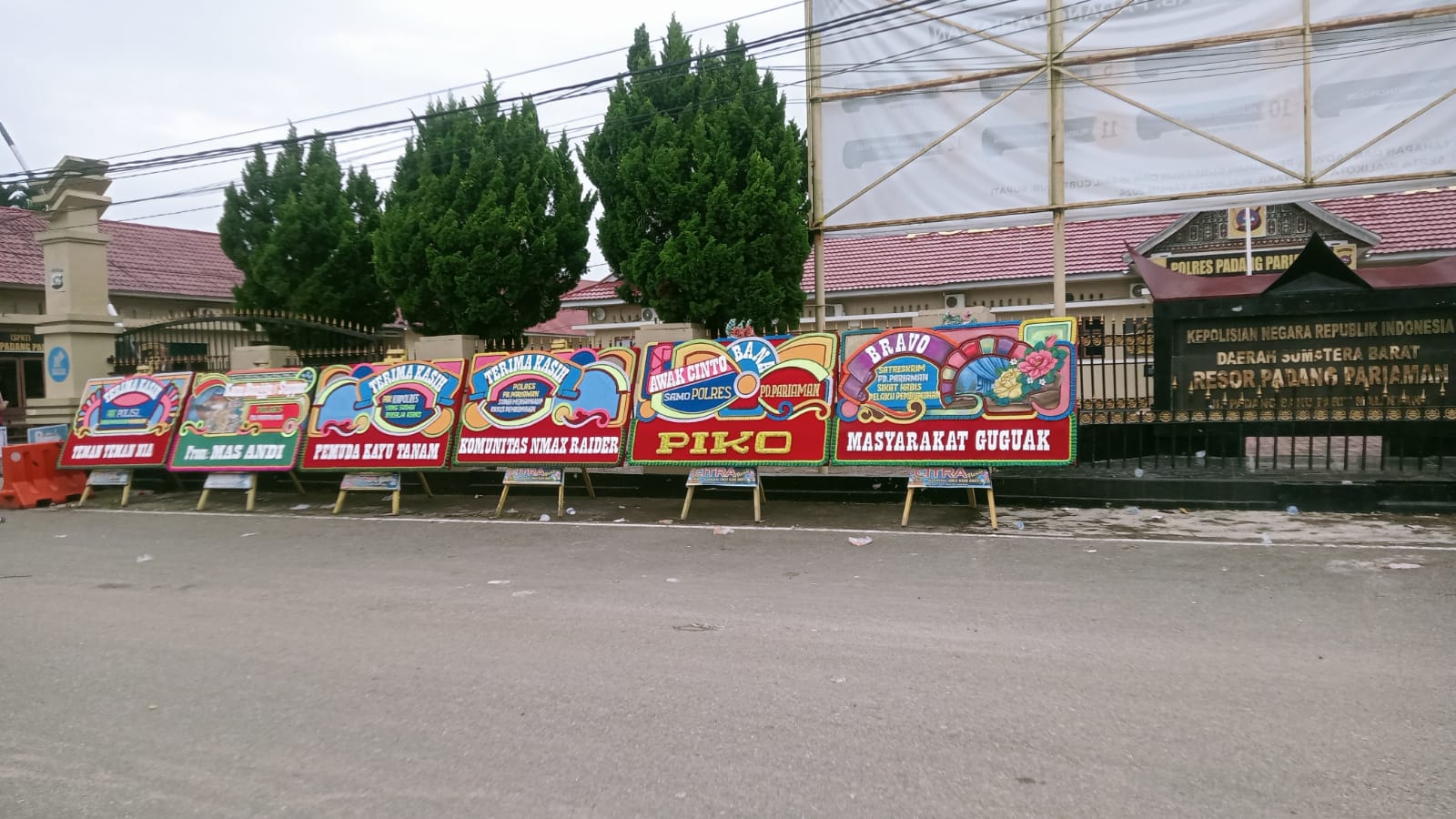 Pantauan wartawan di lokasi, Jumat (20/9) terlihat sejumlah karangan bunga berjejer di depan Mako Polres Padang Pariaman.