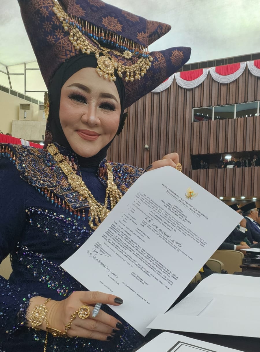 Dr. H. Lisda Hendrajoni, S.E., M.M.Tr., merupakan 1 dari 580 anggota DPR RI yang dilantik pada kegiatan terpusat di Senayan Gedung DPR RI.