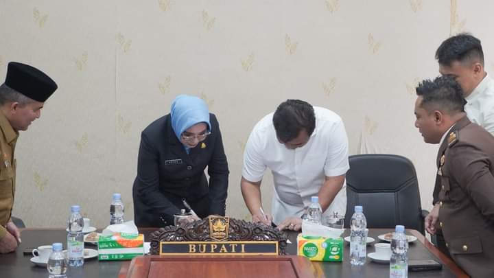 DHARMASRAYA, HANTARAN. – Dalam rangka mendukung penyelenggaraan pemerintahan yang bersih, efektif dan efisien, Bupati Dharmasraya, Sutan Riska Tuanku Kerajaan dan Kepala Kejaksaan Negeri (Kejari) Dharmasraya, Ariana Juliastuty, menandatangani Nota Kesepahaman, yang dilaksanakan di kantor bupati setempat, Senin (2/9/24).