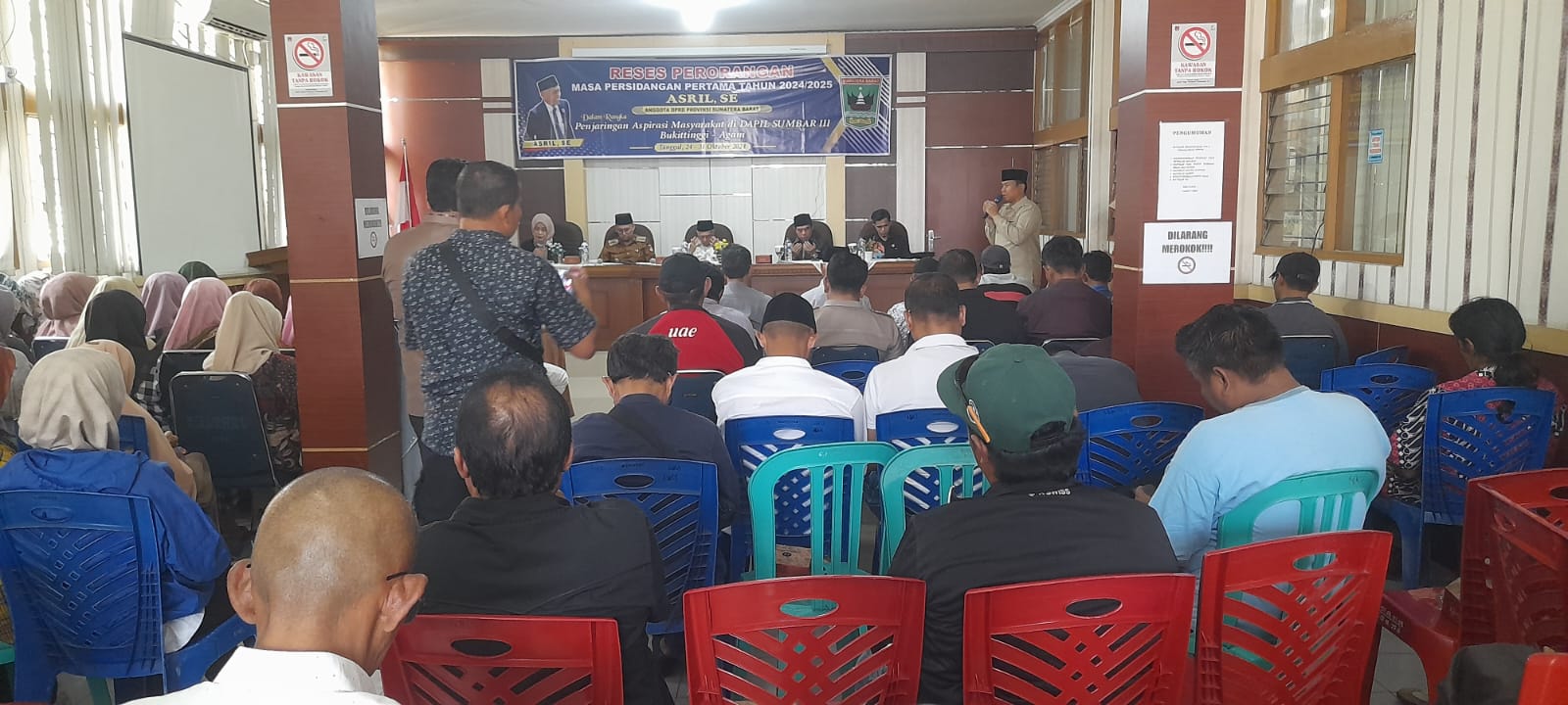 Reses perseorangan masa persidangan pertama tahun 2024/2025 Asril, SE Daerah Pemilihan III (Dapil) Bukittinggi Agam digelar dalam rangka menjemput aspirasi masyarakat.