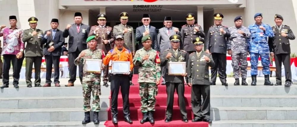 Pada kesempatan itu, Pjs Wali Kota Bukittinggi bersama Dandim 0304 Agam serta unsur Forkopimda, menyerahan piagam penghargaan untuk lomba PBB tingkat SLTP piala Panglima TNI dengan tema menyatu dengan alam.