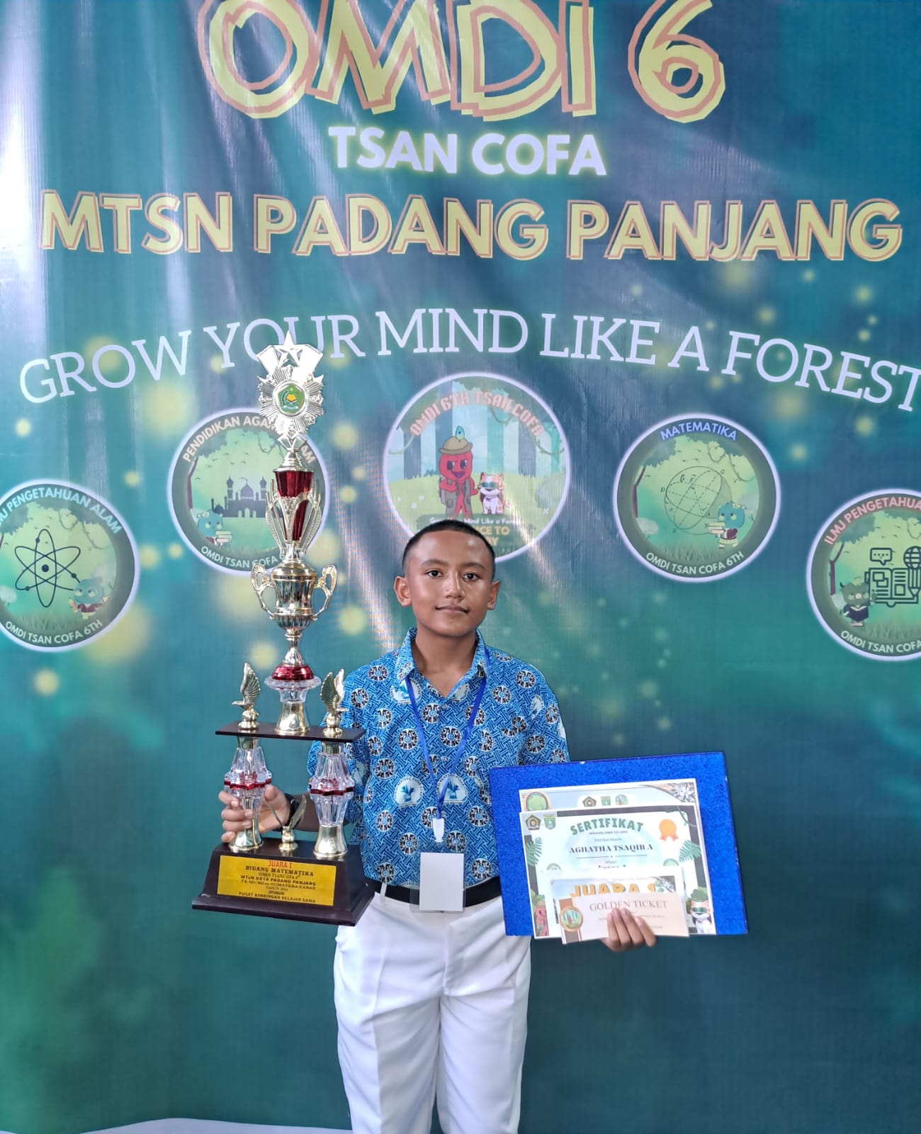 BUKITTINGGI, hantaran.co – Siswa SDN 01 Benteng Pasar Atas Aghatha Tsaqib meraih Juara I Cabang Matematika dalam ajang OMDI Ke-6 Tsan Cofa (Tsanawiyah Competition Fair) tingkat SD/MI/SDIT se-Sumbar.