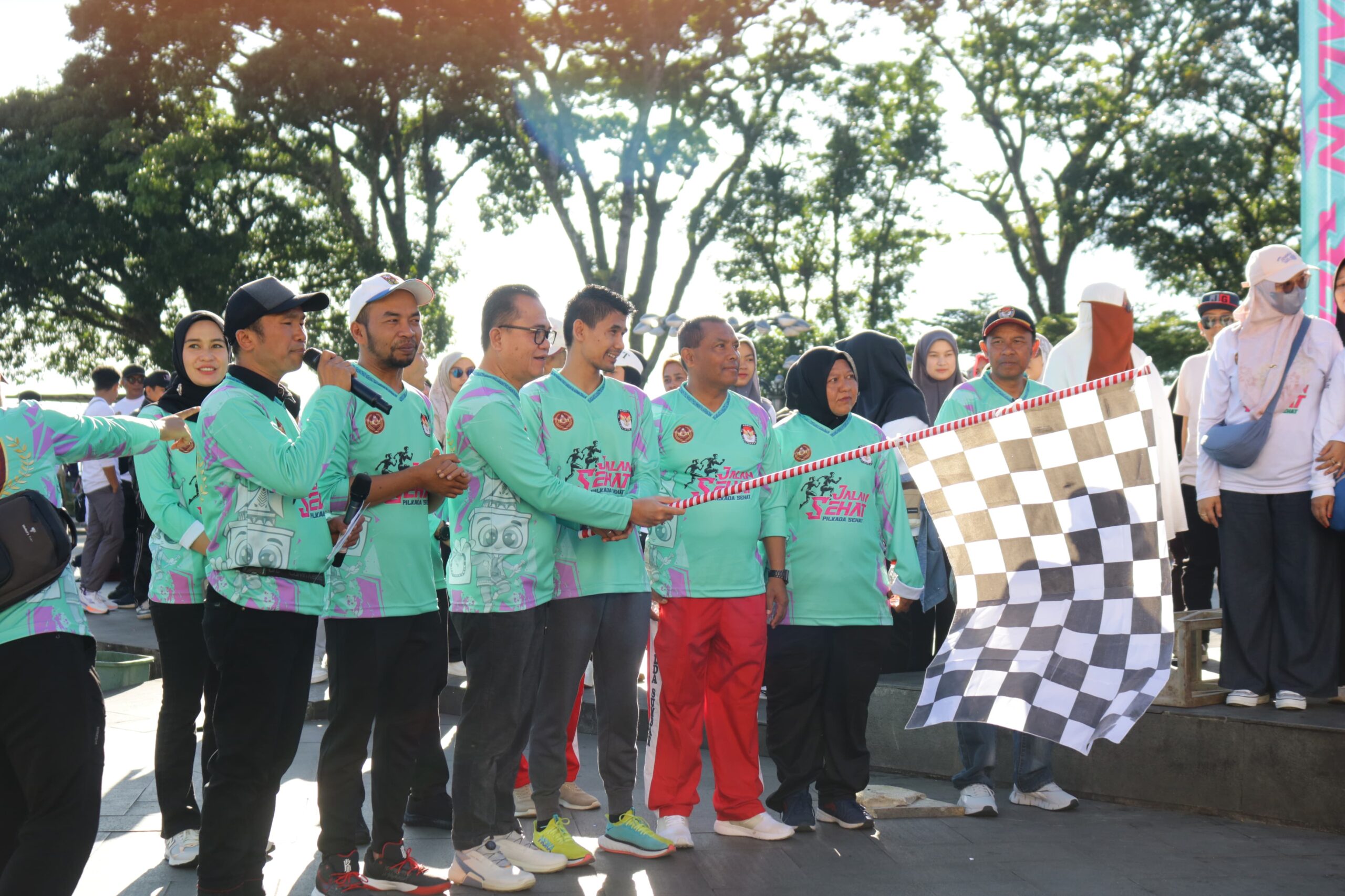 BUKITTINGGI, hantaran.co – Pjs Wali Kota Bukittinggi Hani Syopiar Rustam melepas peserta jalan sehat Pemilu Damai yang diselenggarakan Komisi Pemilihan Umum (KPU) Kota Bukittinggi di Pedestrian Jam Gadang, Minggu(3/11).
