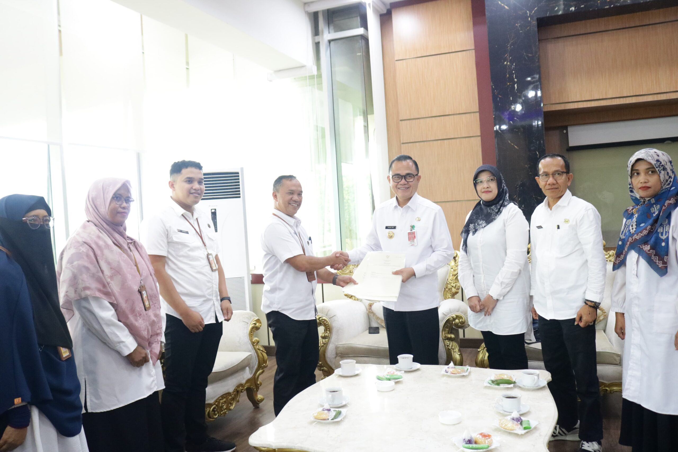 Pjs Wali Kota Bukittinggi Hani S Rustam didampingi Kepala Dinas Perkim Ebyuleris, dan Inspektur Kota, Elvina Kartika Esya mengucapkan terima kasih dan apresiasi kepada Kepala Kantor Badan Pertanahan Kota Bukittinggi yang sudah menyelesaikan sertifikat aset milik Pemerintah Kota Bukittinggi. Tahun 2024 ini Pemko Bukittinggi mengajukan 50 bidang tanah untuk proses sertifikasi ke BPN dan hari ini sudah diterima sebanyak 26 sertifikat.
