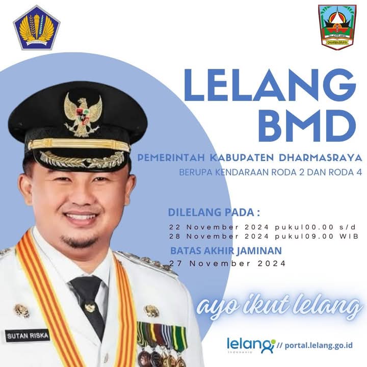 DHARMASRAYA, HANTARAN.CO – Pemerintah Kabupaten Dharmasraya melalui perantara Kantor Pelayanan Kekayaan Negara dan Lelang (KPKNL) Padang, akan melaksanakan lelang Non Eksekusi Wajib Barang Milik Daerah (BMD) dengan objek lelang berupa Kendaraan Dinas Operasional/Jabatan dan Scrap/Besi Tua yang sudah tidak digunakan lagi untuk operasional berupa Kendaraan roda 2 dan roda 4.
