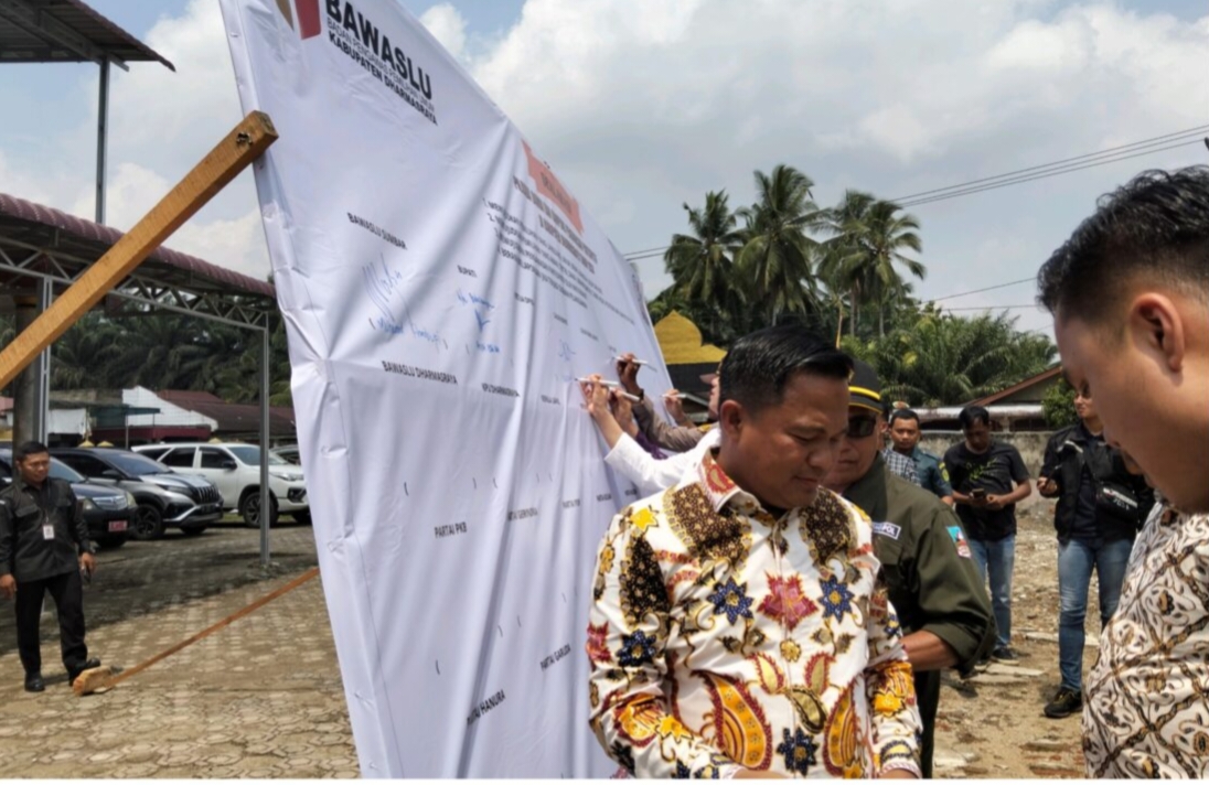 DHARMASRAYA, HANTARAN. CO – Dalam sebuah acara yang dihadiri oleh seluruh Bawaslu se-Sumatera Barat, Badan Pengawas Pemilu (Bawaslu) Dharmasraya meresmikan Deklarasi Pilkada Damai dan meluncurkan Kampung Pengawasan Partisipatif di Sitiung. Langkah ini merupakan bagian dari upaya Bawaslu dalam memastikan Pilkada 2024 berlangsung aman, tertib, dan jauh dari praktik-praktik yang merusak demokrasi.