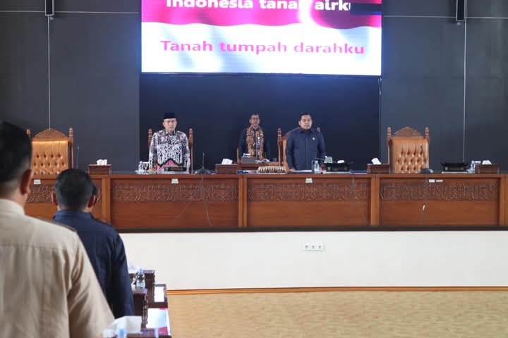 Dharmasraya, Hantaran. Co – Melalui Rapat Paripurna, 7 (tujuh) Fraksi DPRD sampaikan tanggapan atas pandangan bupati terkait 2 Ranperda Inisiatif DPRD yakni Ranperda tentang Penanggulangan Kemiskinan dan Ranperda tentang Perlindungan dan Pemberdayaan Petani. Rapat ini dipimpin oleh Wakil Ketua DPRD Ade Sudarman,S.Pd dan dihadiri oleh Bupati Dharmasraya yang diwakili oleh Sekretaris Daerah H. Adlisman,S.Sos,M.Si. Kamis,(28/11/2024).