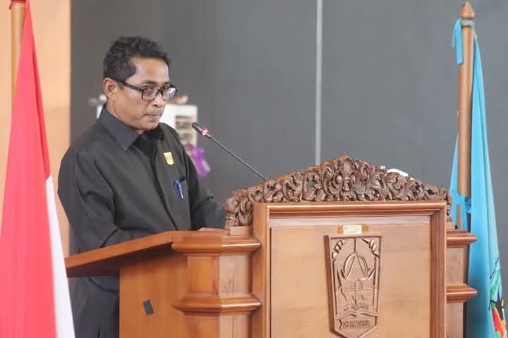 Dharmasraya, Hantaran. Co – Ketua Badan Pembentukan Peraturan Daerah (Bapemperda) DPRD Kabupaten Dharmasraya Pasdisata Dt Kabilangan,A.Md sampaikan Nota Penjelasan DPRD terkait 2 (dua) Rancangan Peraturan Daerah (Ranperda) Inisiatif DPRD dalam Rapat Paripurna yang dipimpin oleh Wakil Ketua I DPRD Kabupaten Dharmasraya Sujito serta didampingi Wakil Ketua II DPRD Ade Sudarman,S.Pd, selain itu turut hadir Bupati Dharmasraya yang diwakili oleh Sekretaris Daerah H. Adlisman,S.Sos,M.Si di Ruang Rapat Utama DPRD Kabupaten Dharmasraya. Senin,(25/11/2024).