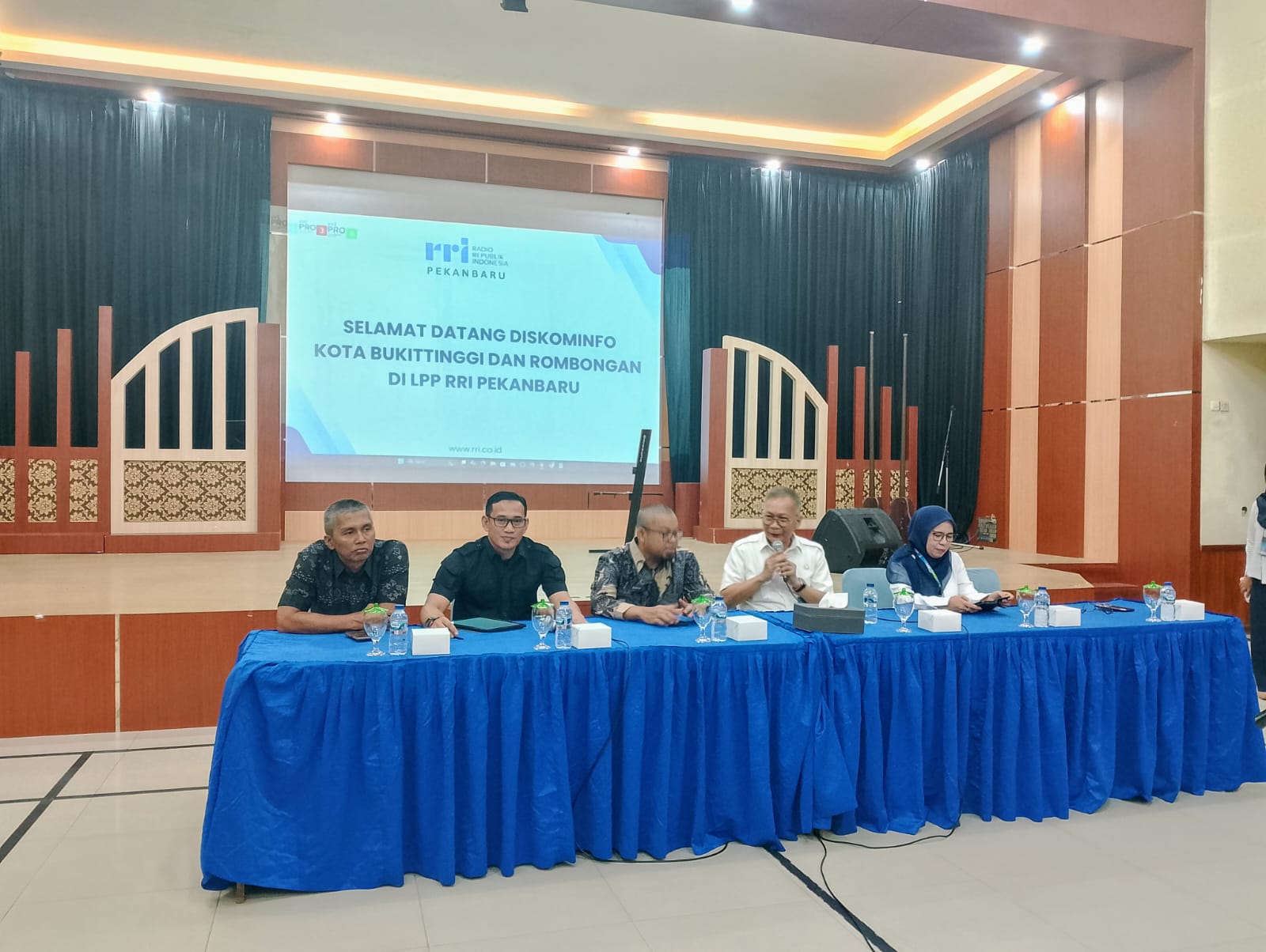 Saat melakukan kunjungan ke LPP RRI Pekanbaru, rombongan Wartawan dan Dinas Kominfo Bukittinggi diterima oleh Kepala Stasiun LPP RRI Pekanbaru Mochammad Bugi Hidayat beserta jajarannya.