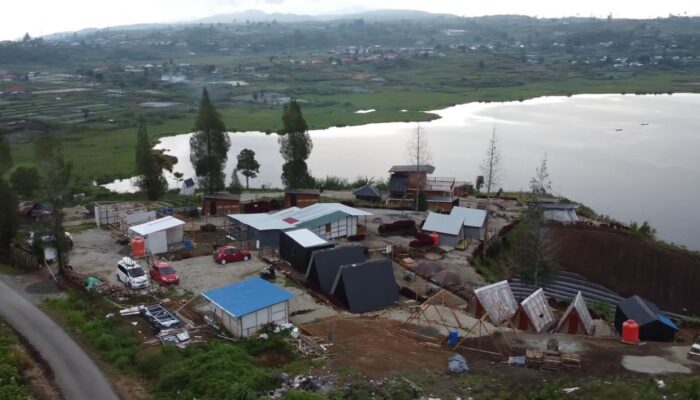 Sensasi ini disediakan dig lamping geo dome yang berada di sisi danau.