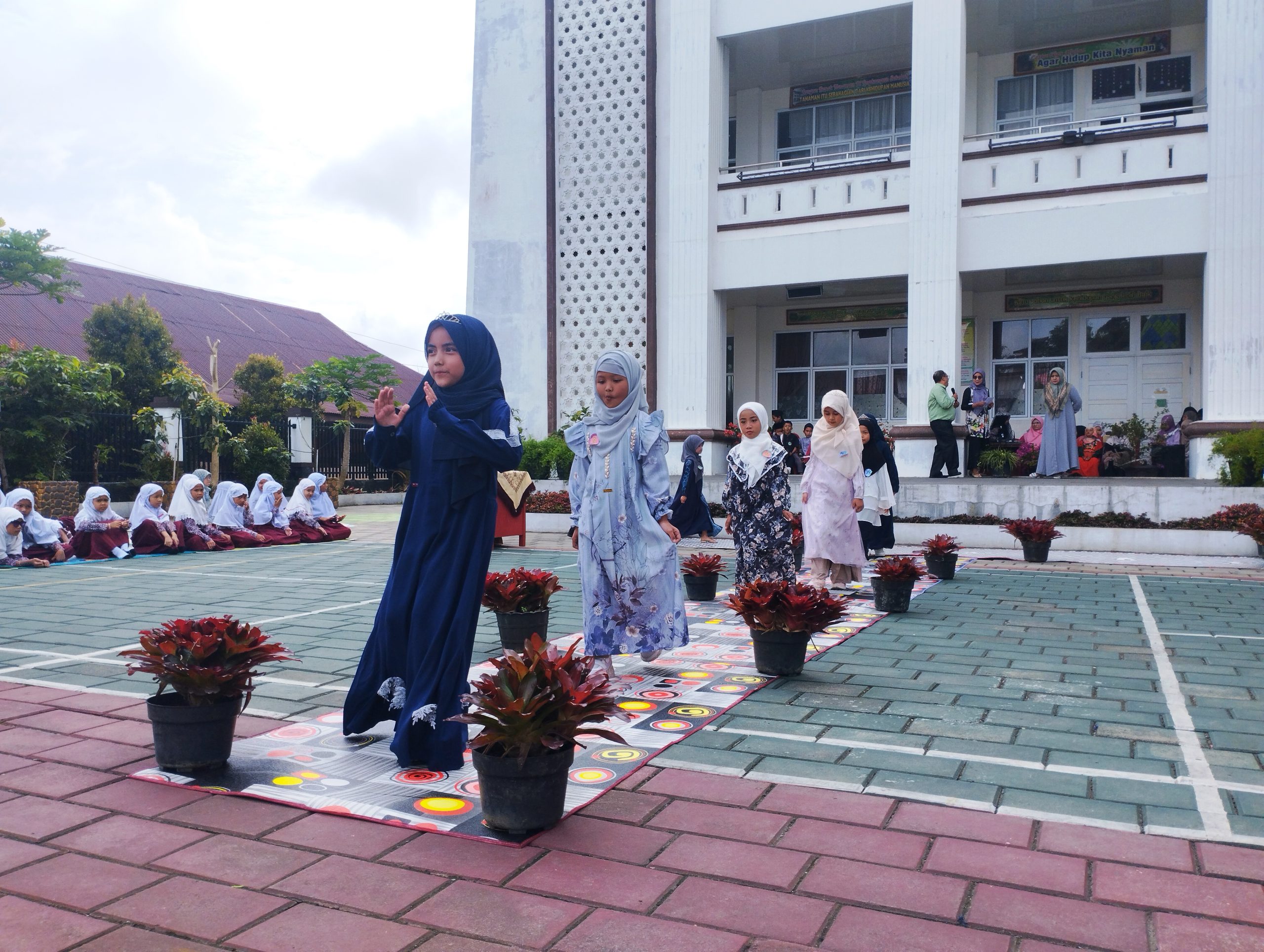Silih berganti siswa sekolah tersebut berjalan di atas catwalk memamerkan pakaian yang telah mereka persiapkan bersama guru dan orang tua. Lengkap dengan make upnya, para siswa melenggang diiringi musik Islami yang menambah meriah acara tersebut.