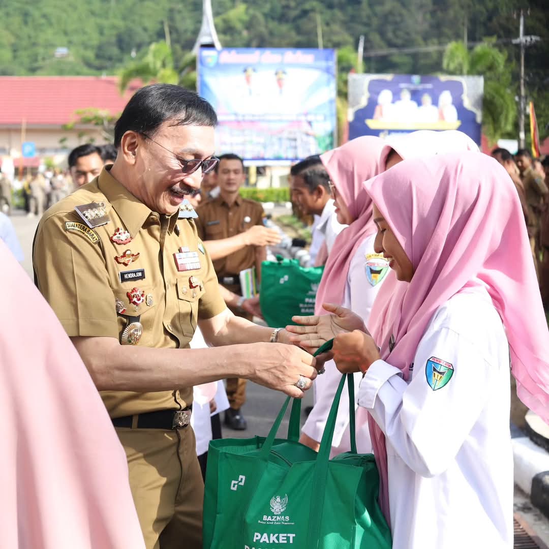 Pesisir Selatan – Bupati Pesisir Selatan, Hendrajoni, menyerahkan 250 paket Idul Fitri Ceria kepada pegawai honorer non-database di lingkungan Pemerintah Kabupaten Pesisir Selatan dalam apel gabungan yang digelar pada Senin (24/3/2025).