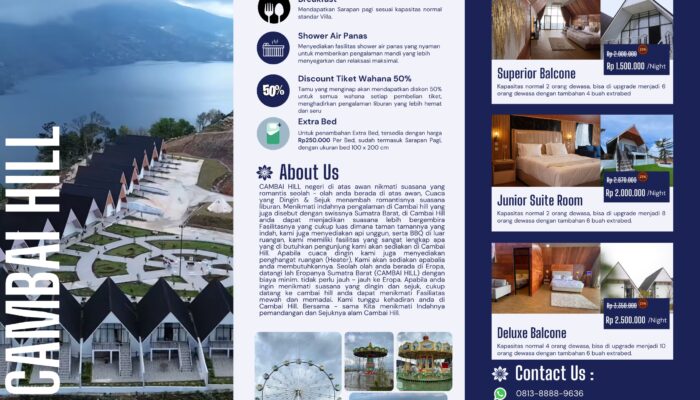Wisatawan yang ingin berkunjung bisa mengakses Instagram Cambil Hill, atau websitenya di www.cambailhill.com atau menghubungi nomor reservasinya 081388889636.