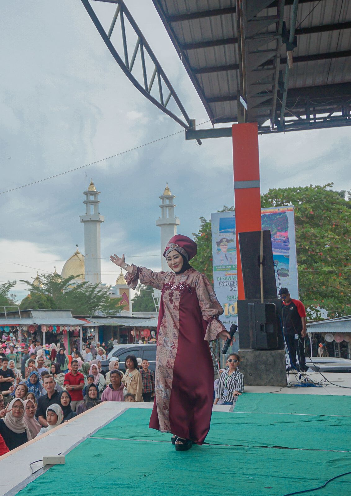 Pesisir Selatan – Ketua Tim Penggerak PKK sekaligus Ketua Dewan Kerajinan Nasional Daerah (Dekranasda) Kabupaten Pesisir Selatan, Lisda Hendrajoni, mencuri perhatian pengunjung dalam balutan busana khas daerah pada gelaran Semarak Idulfitri di kawasan wisata Pantai Carocok Painan.