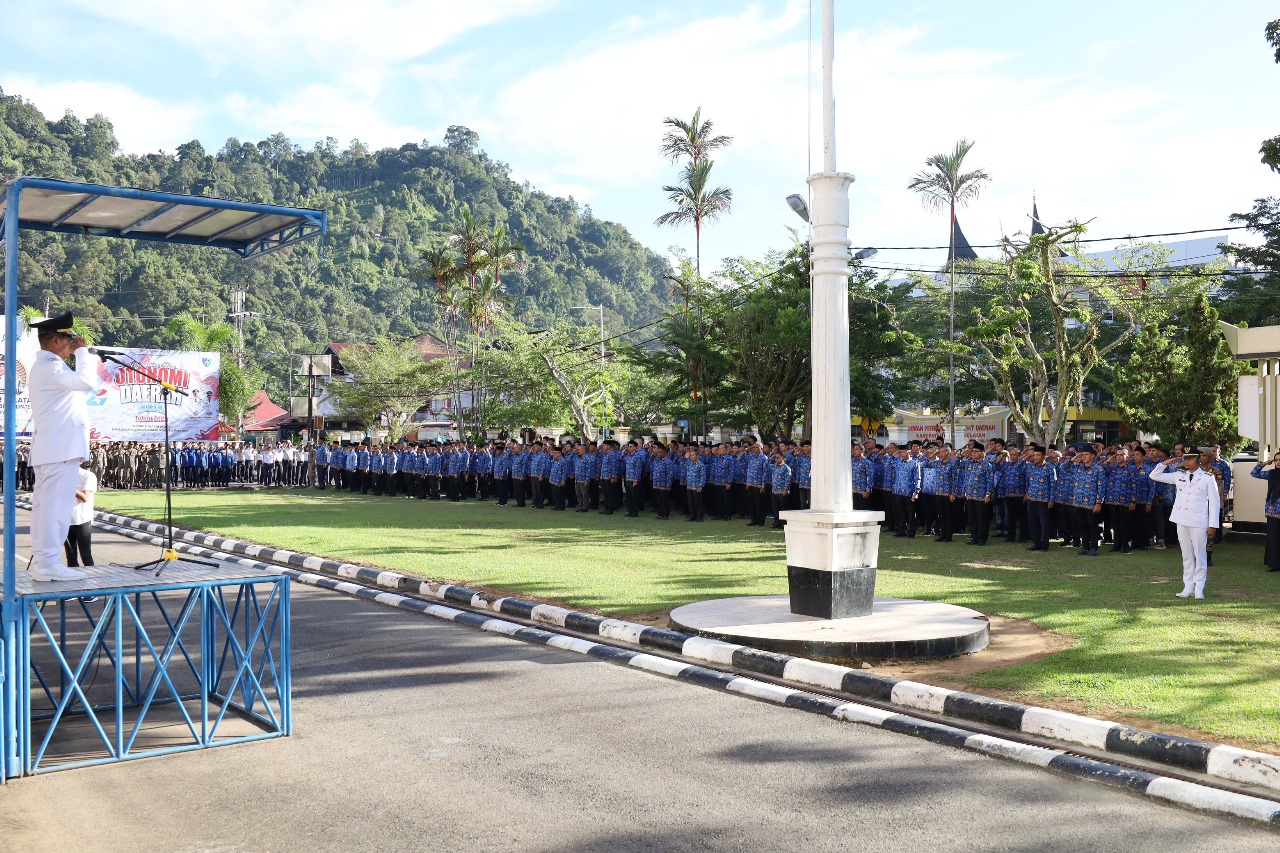 Dalam upacara yang berlangsung khidmat tersebut, Risnaldi membacakan sambutan resmi Menteri Dalam Negeri Republik Indonesia. Dalam sambutannya, Mendagri menekankan pentingnya sinergi antara pemerintah pusat dan daerah sebagai kunci dalam membangun masa depan Indonesia yang lebih maju dan berdaulat.