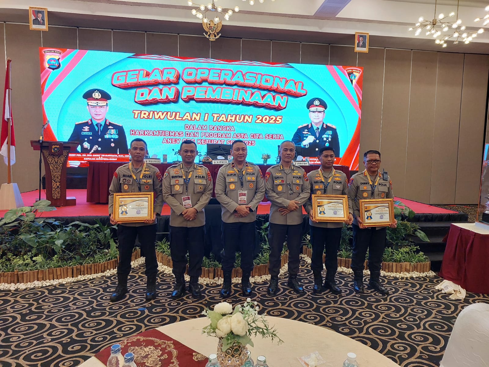 PADANG – Kapolres Pesisir Selatan, AKBP Derry Indra, meraih penghargaan dalam kegiatan Gelar Operasional Triwulan I Tahun 2025 yang digelar pada Selasa, 29 April 2025, pukul 09.30 WIB, di Ballroom Hotel Pangeran Beach, Kecamatan Padang Barat, Kota Padang.