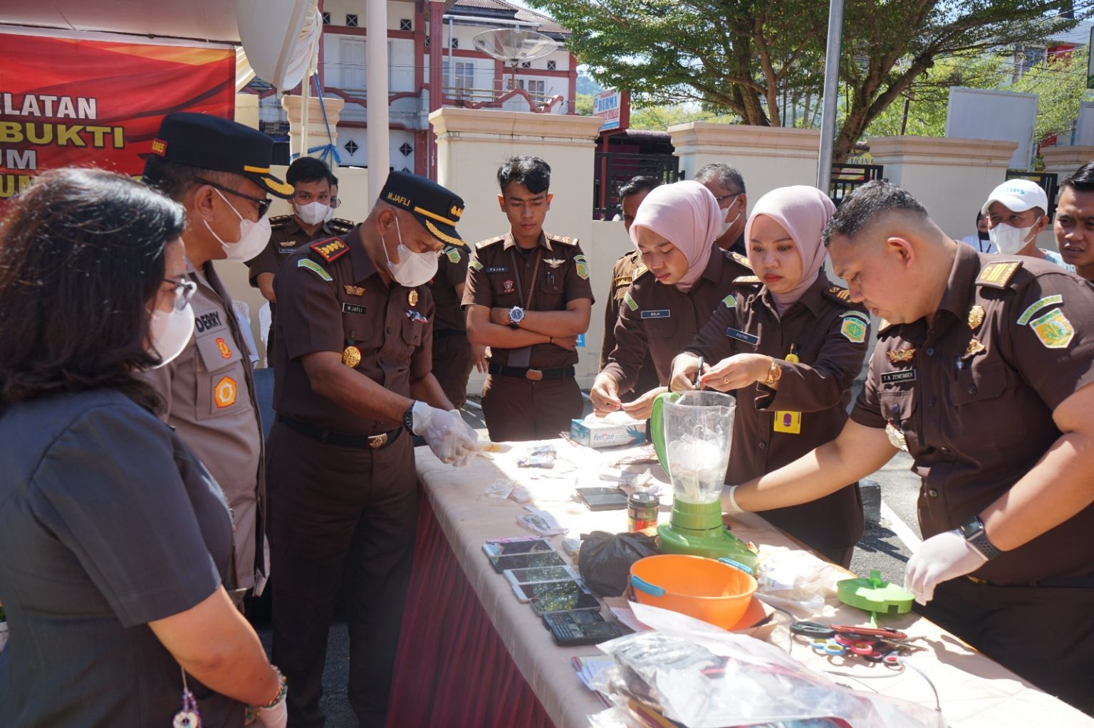 Pemusnahan barang bukti dipimpin langsung oleh Kepala Kejaksaan Negeri Pesisir Selatan, Muhammad Jafli, didampingi para kepala seksi. Hadir pula sejumlah pejabat dari Polres, Pengadilan Negeri Painan, Rutan Painan, serta Dinas Kesehatan Kabupaten Pesisir Selatan.
