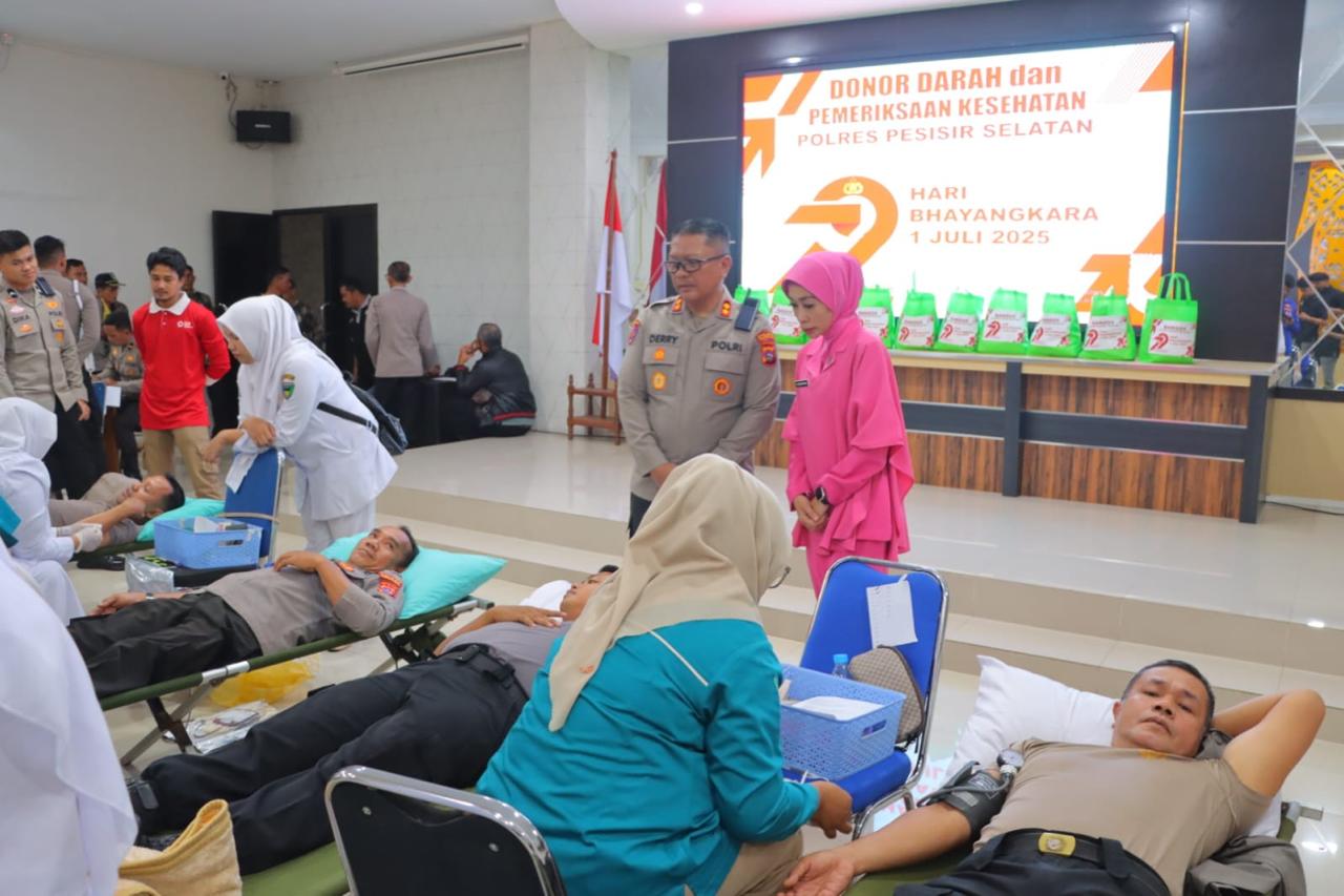 Acara diawali dengan aksi donor darah yang diikuti sekitar 102 personel Polres Pesisir Selatan dan masyarakat umum. Donor darah ini dilaksanakan bekerja sama dengan RSUD M. Zein Painan sebagai bentuk nyata kepedulian Polri terhadap ketersediaan stok darah di fasilitas kesehatan, khususnya PMI.