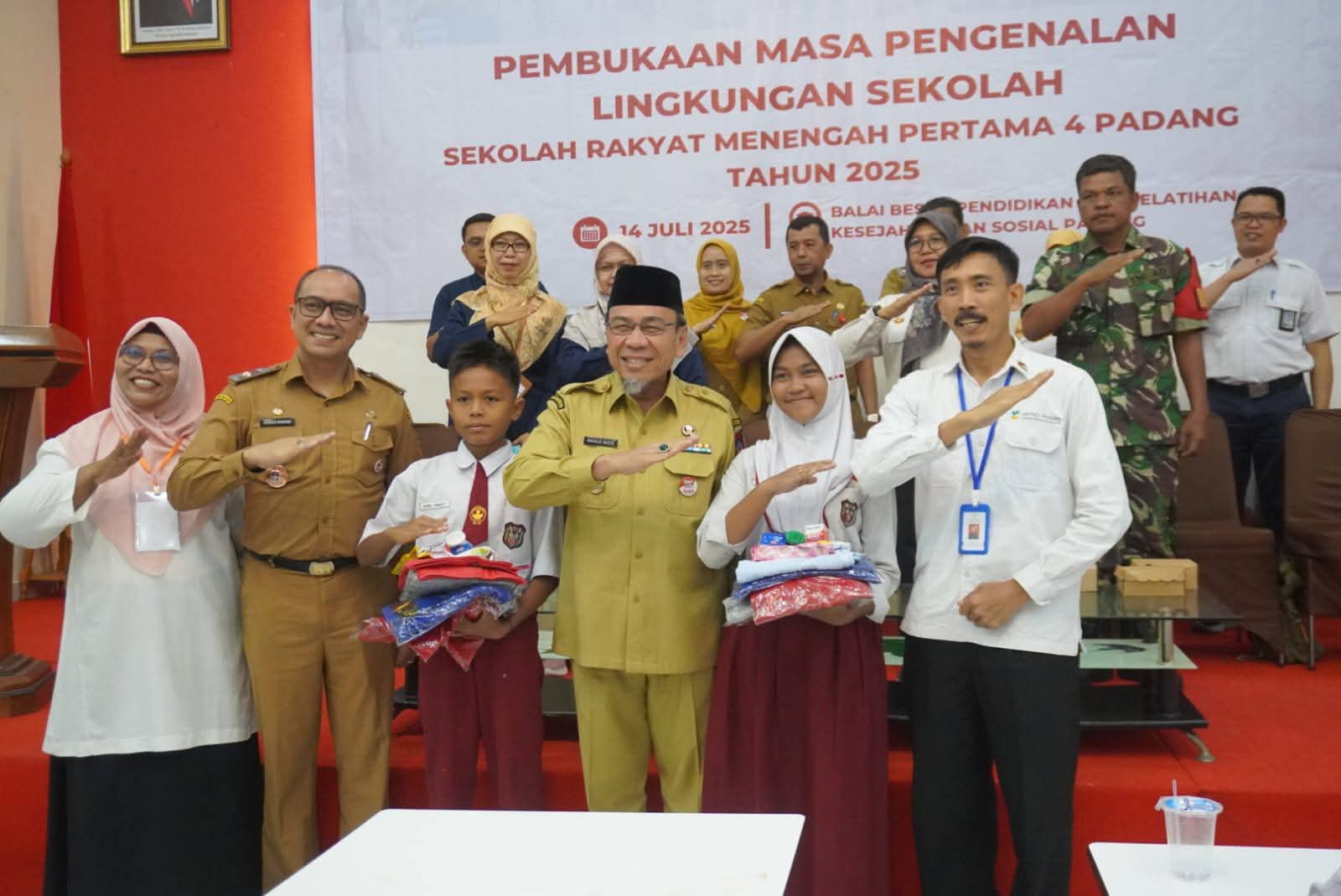 PADANG, HANTARAN.CO – Para siswa Sekolah Rakyat Menengah Pertama (SRMP) 4 Padang mendapat suntikan motivasi dari Wakil Wali Kota Padang, Maigus Nasir pada hari pertama Masa Pengenalan Lingkungan Sekolah (MPLS), Kecamatan Pauh, Padang, Senin (14/7/2025).