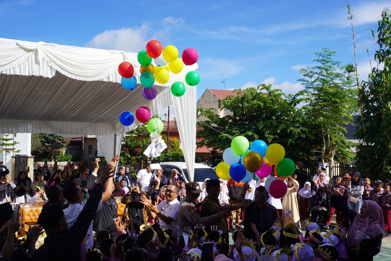 BUKITTINGGI, hantaran.co – Launching Masa Pengenalan Lingkungan Sekolah (MPLS) tahun ajaran 2005/2026 di SDN 04 Garegeh Kota Bukittinggi berlangsung dengan suasana penuh semangat dan ceria, Rabu (16/7). Kegiatan launching MPLS ditandai dengan pelepasan balon cita cita di halaman sekolah setempat. Tepuk tangan dan sorak semangat dari peserta didik baru dan wali murid menggema saat balon cita cita dilepaskan ke udara.