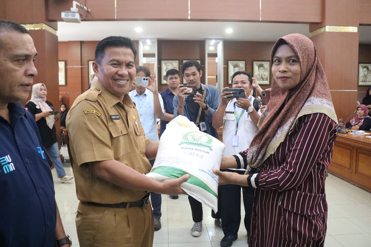 Bantuan tersebut disalurkan secara simbolis oleh Sekda Kota Bukittinggi bersama Pimpinan Cabang Bulog Bukittinggi di aula Balaikota, Selasa (22/7). Turut hadir dalam kegiatan itu Kepala Dinas Pertanian dan Pangan, serta Kepala Dinas Sosial Bukittinggi.