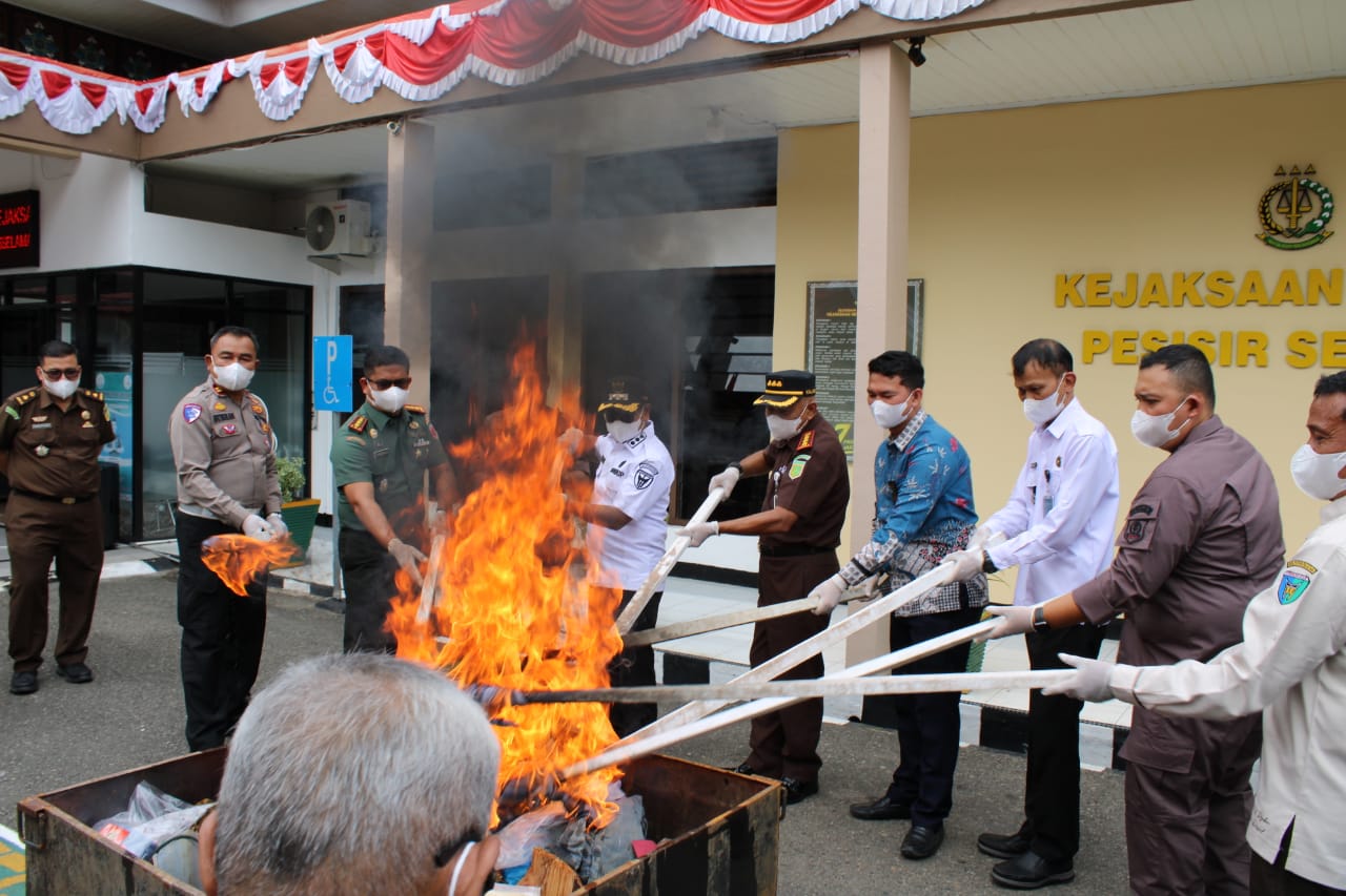 Pemusnahan dipimpin langsung oleh Kepala Kejari Pesisir Selatan, Muhammad Jafli, dan dihadiri perwakilan dari Bupati Pesisir Selatan, Polres Pesisir Selatan, Kodim Pesisir Selatan, Pengadilan Negeri Painan, Rutan Kelas IIB Painan, serta Dinas Kesehatan Kabupaten Pesisir Selatan. Sejumlah siswa dari SMKN 1 Painan juga ikut menyaksikan kegiatan ini sembari menerima materi mengenai barang bukti narkotika dan bahayanya.