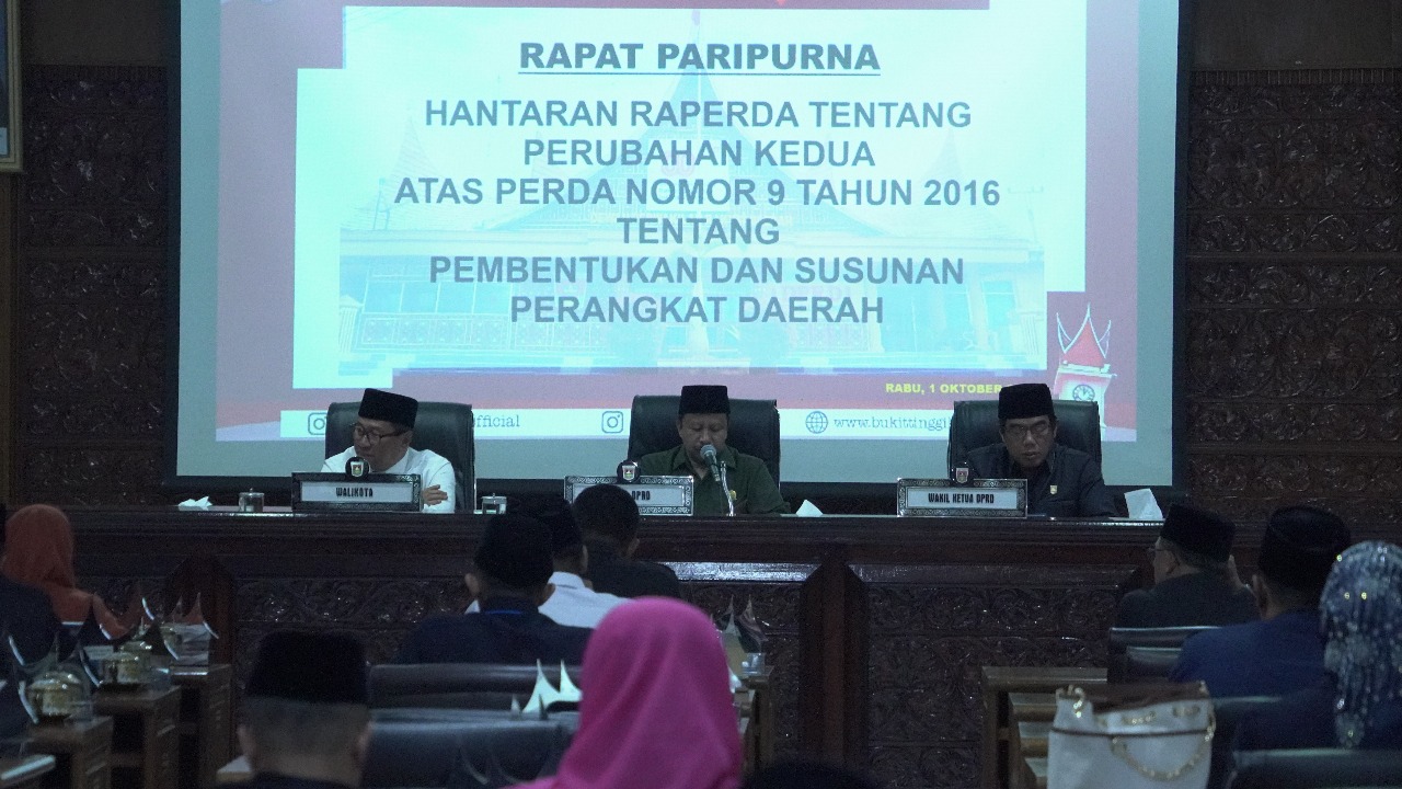 Ketua DPRD Kota Bukittinggi Syaiful Efendi menyampaikan, Pemerintah Kota Bukittinggi kembali melakukan evaluasi dan penataan kelembagaan perangkat daerah. Langkah ini dilakukan untuk mewujudkan perangkat daerah yang tepat fungsi, tepat ukuran, serta sinergis, dengan orientasi pada peningkatan pelayanan, pemberdayaan, dan peran serta masyarakat secara efektif, efisien, dan berkualitas.