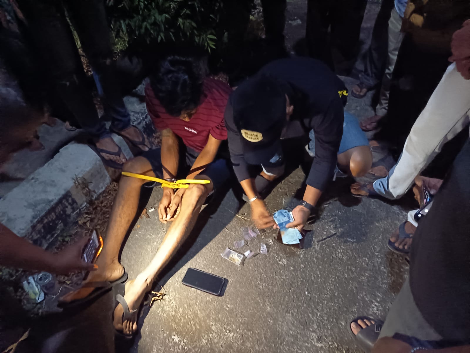 Akhirnya, petugas berhasil mengidentifikasi tersangka di lokasi yang kerap dijadikan tempat transaksi narkoba.Dalam penggerebekan tersebut, petugas menemukan barang bukti berupa 1 paket sabu-sabu seberat 1,13 gram dan 1 paket ganja kering seberat 5,17 gram yang diduga kuat siap untuk diedarkan.