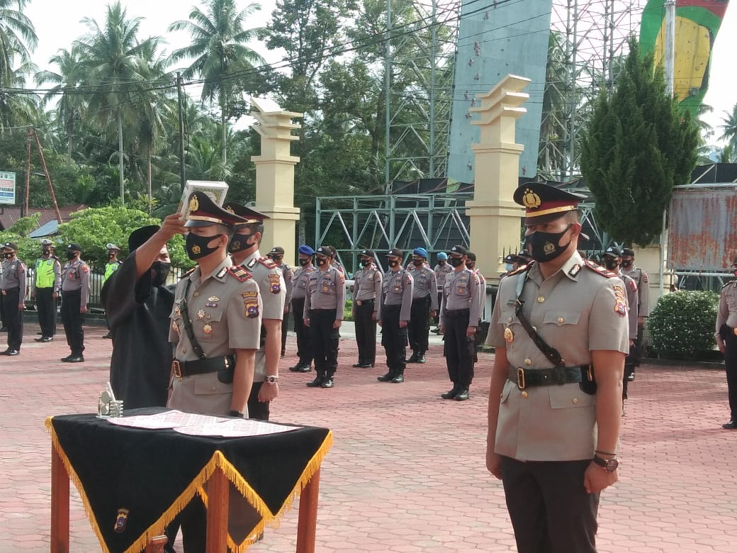 PADANG PARIAMAN, hantaran.co — Kapolres Padang Pariaman, AKBP Dian Nugraha, HBWPS., S.H. S.IK, pimpin upacara serah terima jabatan (Sertijab) Kasatreskrim dan Kasat Narkoba Polres Padang Pariaman, Senin (19/10/2020). Acara tersebut dilaksanakan di Halaman Mapolres Padang Pariaman.