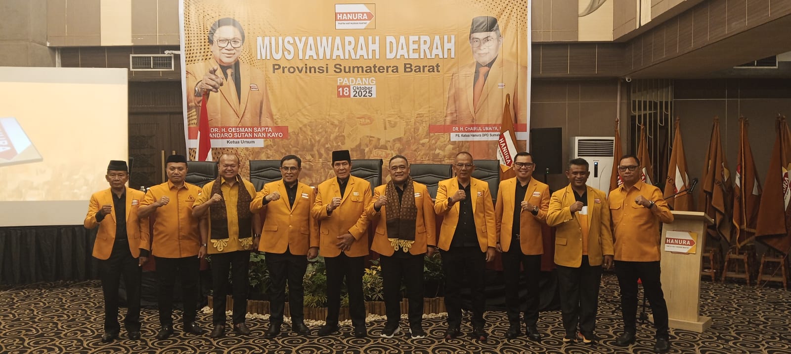 PADANG, HANTARAN.CO- Edi Naswany terpilih secara aklamasi sebagai Ketua DPD Partai Hanura Sumbar periode 2025-2030 dalam musyawarah daerah (Musda) yang digelar di Hotel Pangeran Beach, Padang, Sabtu (18/10/2025).