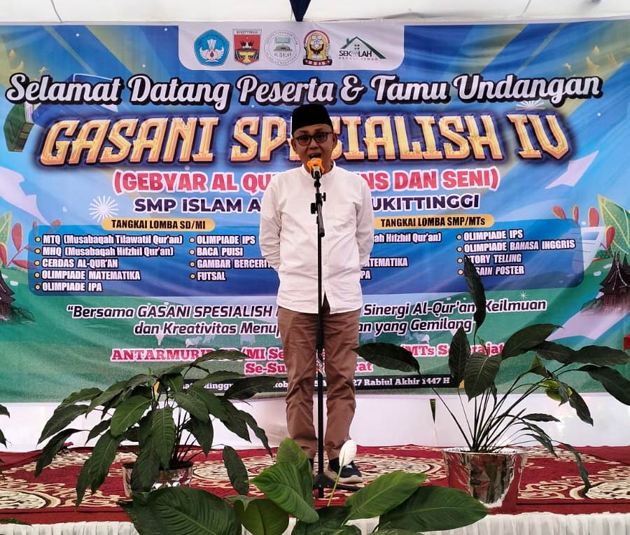 BUKITTINGGI, hantaran.co – Kepala Disdikbud Kota Bukittinggi Herriman membuka secara resmi Gebyar Al Quran, Sains, dan Seni SMP Islam Al Ishlah (Gasani Spesialish) IV disekolah tersebut, Sabtu(18/10/2025).