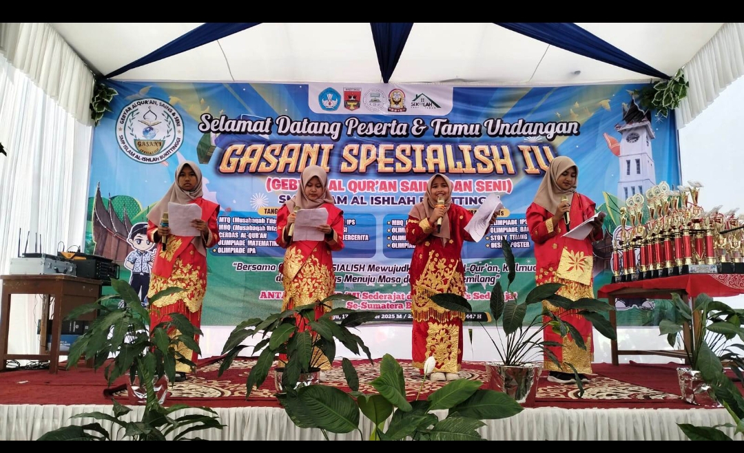 BUKITTINGGI, hantara.Co–SMP Islam Al Ishlah Kota Bukittinggi sukses menggelar Gebyar Al Quran, Sains, dan Seni SMP Islam Al Ishlah (Gasani Spesialish) IV. Diikuti ribuan peserta, kegiatan ini digelar selama dua hari, 18-19 Oktober 2025 di sekolah tersebut.