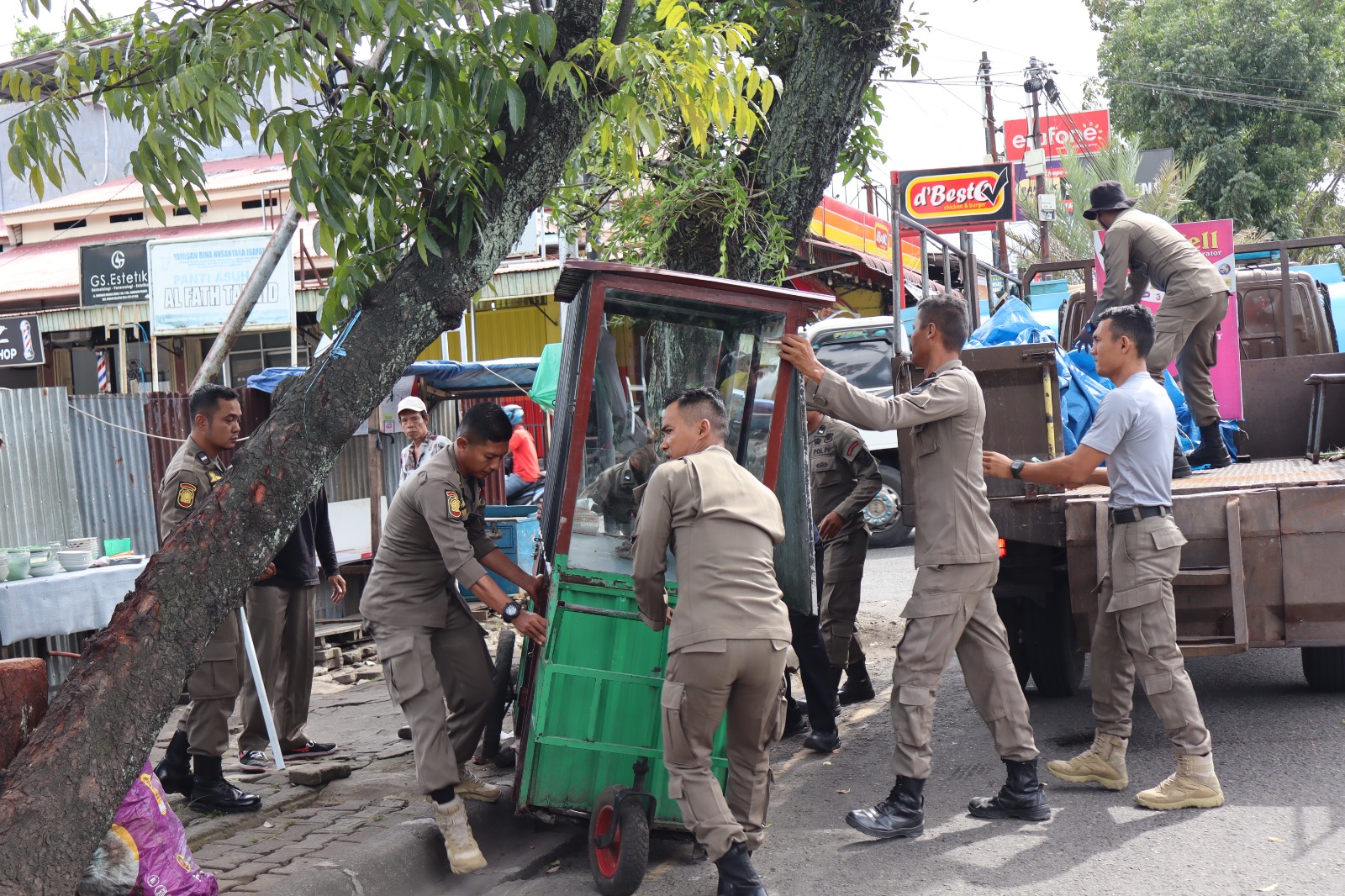 “Sesuai program bapak walikota ” Padang Sigap” usai mendapat laporan dari masyarakat yang terganggu kita langsung ke lokasi, setiba di sana beberapa lapak seperti satu unit gerobak, terpal, kursi plastik serta papan kayu kita amankan, ” ujarnya