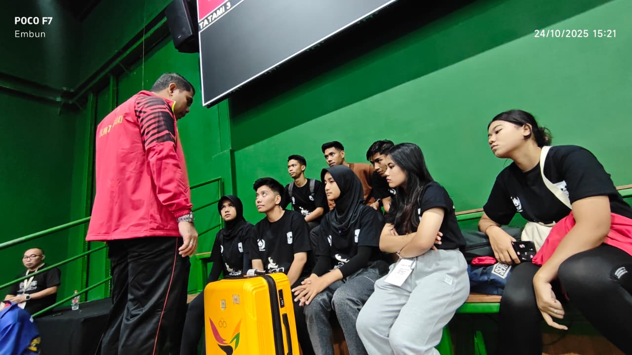 Kudus,hantaran.Co– Sekretaris Umum (Sekum) Komite Olahraga Nasional Indonesia (KONI) Sumatera Barat (Sumbar), Anandya Dipo Pratama, bakar semangat atlet, pelatih, dan ofisial tim karate Sumbar yang berlaga di arena Pekan Olahraga Nasional (PON) Bela Diri 2025 di Kudus, Jawa Tengah.