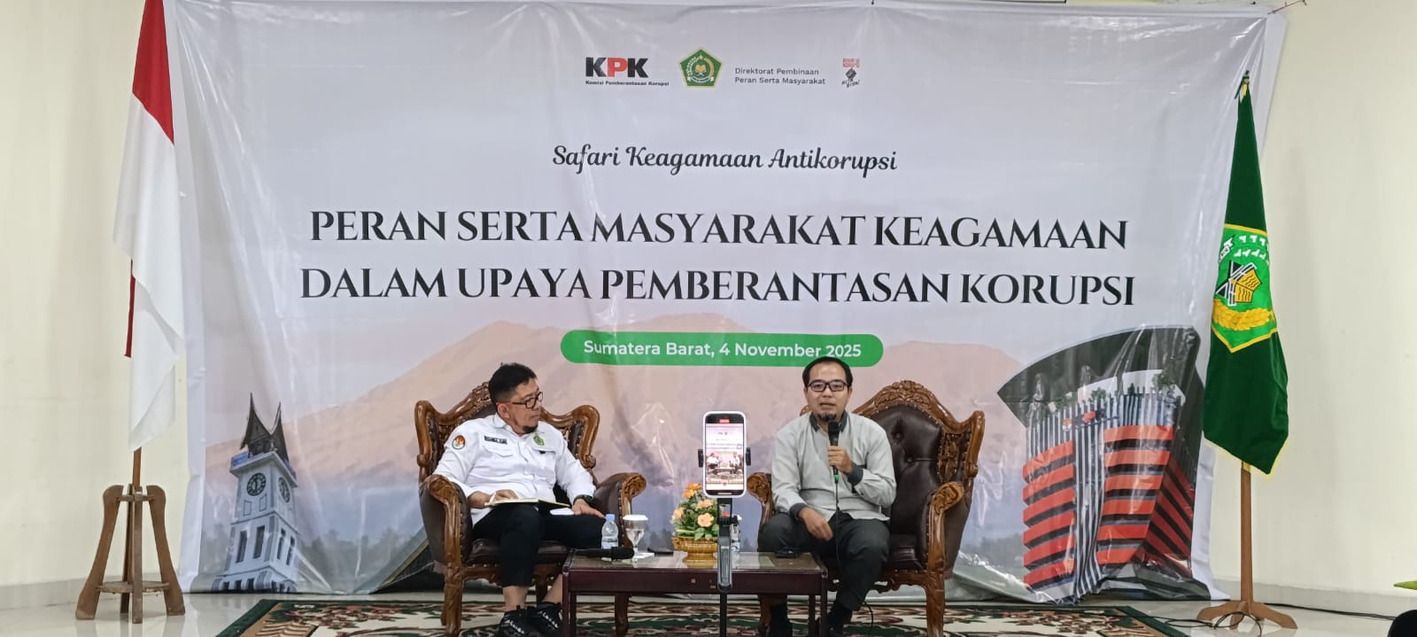 PADANG, hantaran.Co– Komisi Pemberantasan Korupsi (KPK) Republik Indonesia bersama Kantor Wilayah Kementerian Agama Sumatera Barat (Sumbar) menggelar workshop Safari Keagamaan Antikorupsi dengan tema Peran Serta Masyarakat Keagamaan dalam Pemberantasan Korupsi di Aula Kanwil Kemenag Sumbar, Selasa (4/11/2025).