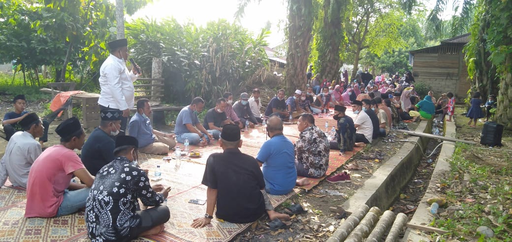 “Ya, sebenarnya kita bersilaturahmi dengan beberapa orang saja, namun tanpa disengaja terlihat banyaknya masyarakat sudah memadati halaman rumah. Tadinya rencana acara kita di dalam rumah untuk bertatap muka terpaksa kita adakan diluar rumah dengan membentangkan tikar karena begitu ramainya warga,” ungkap Syaiful Hanif yang jadi pembawa acara.