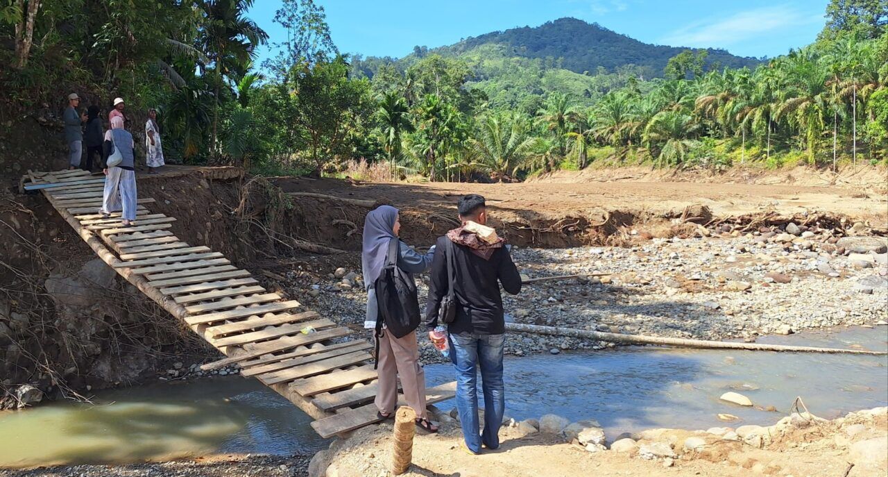 Tim SMPN 6 Peduli yang dipimpin Kepala Sekolah, terjun langsung ke wilayah terdampak bencana untuk menyerahkan bantuan di Jorong Subarang Aia Nagari Salareh Aia Timur Palembayan Kabupaten Agam, Sabtu(6/12).